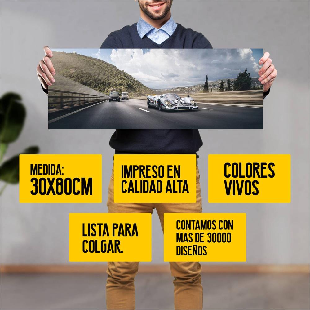 Descubre la elegancia y el estilo con nuestro cuadro impreso en canva full color de 30×80 cm. Este impresionante diseño de 1970 Porsche 917K 001 es el complemento perfecto para cualquier espacio.