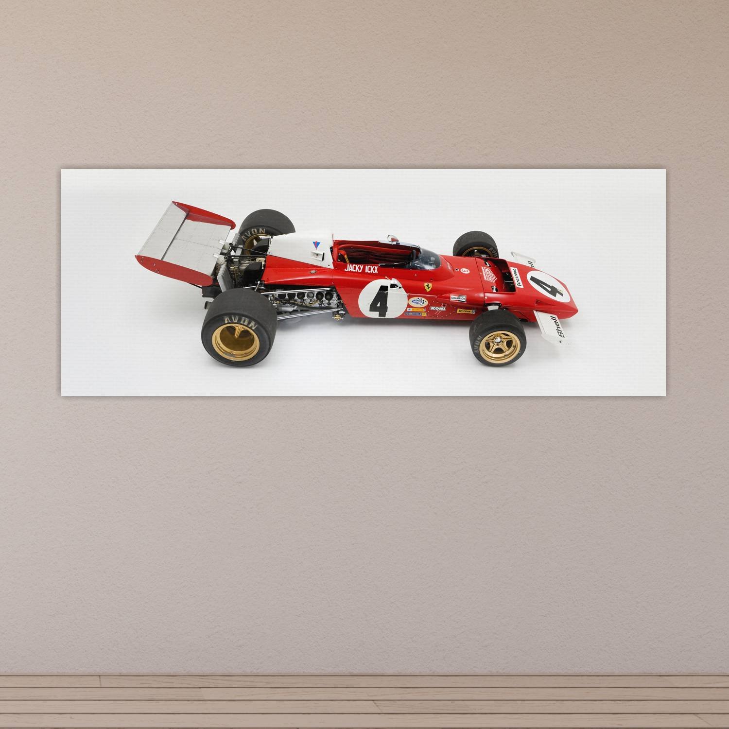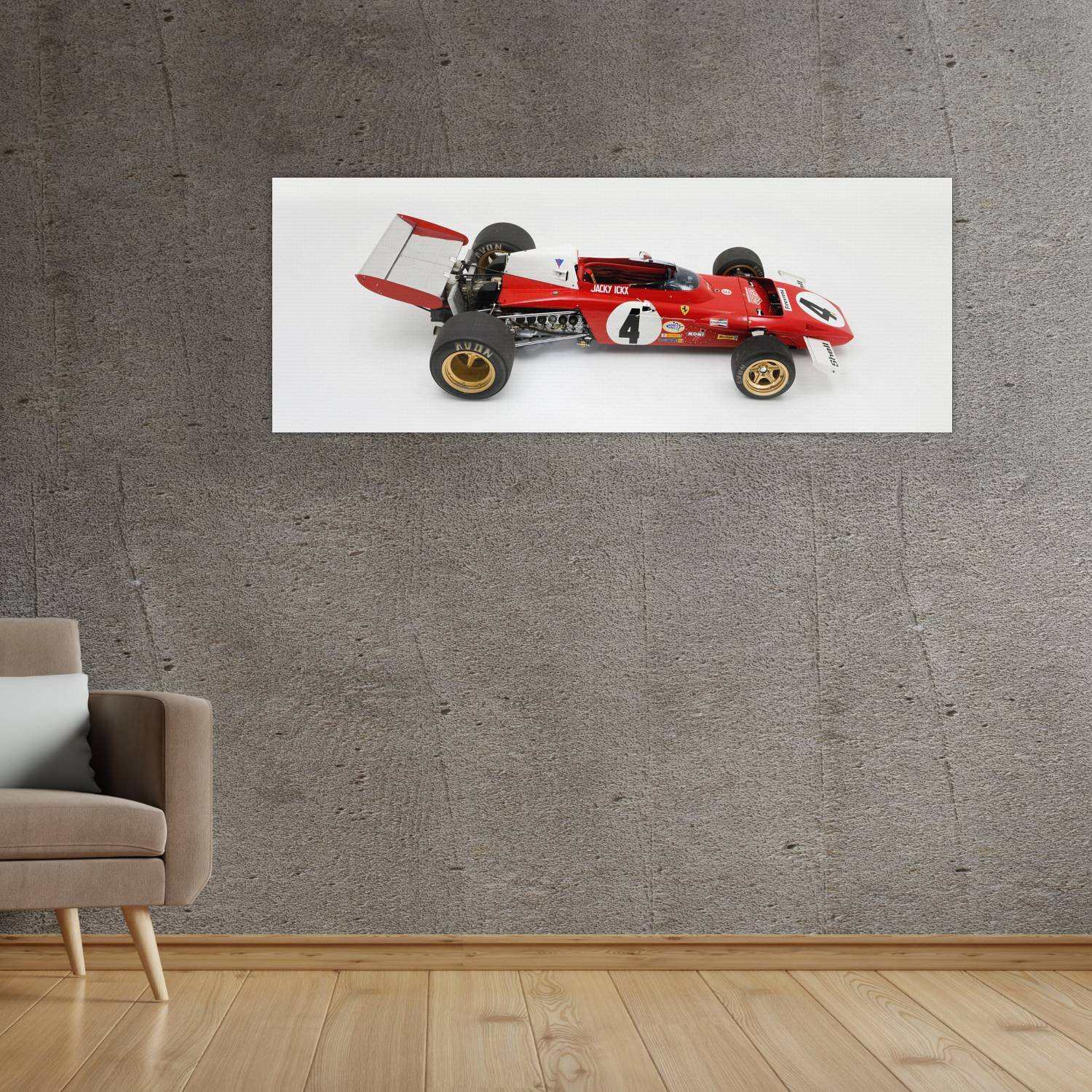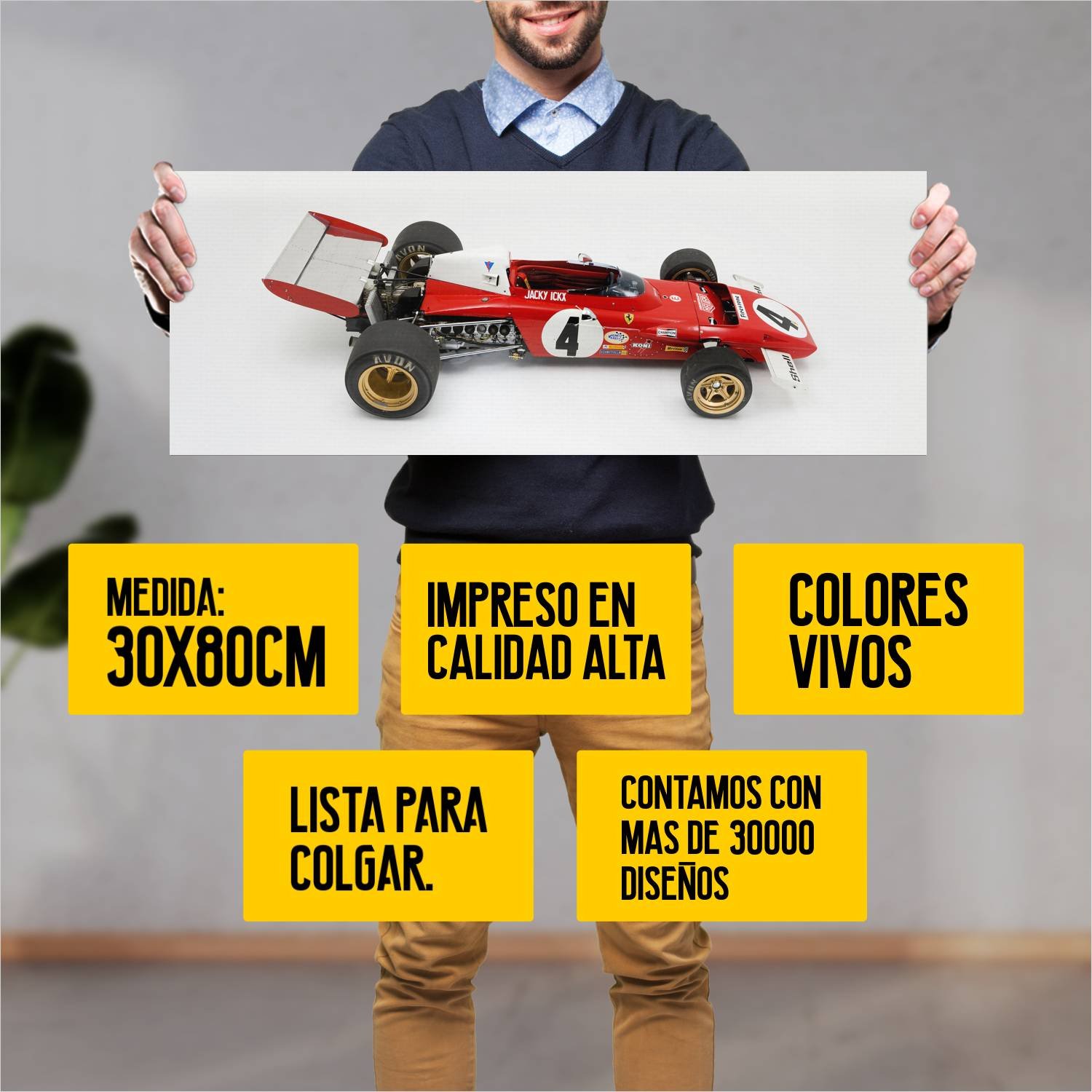 Descubre la elegancia y el estilo con nuestro cuadro impreso en canva full color de 30×80 cm. Este impresionante diseño de 1972 ferrari 312 b2 auto 121 es el complemento perfecto para cualquier espacio.