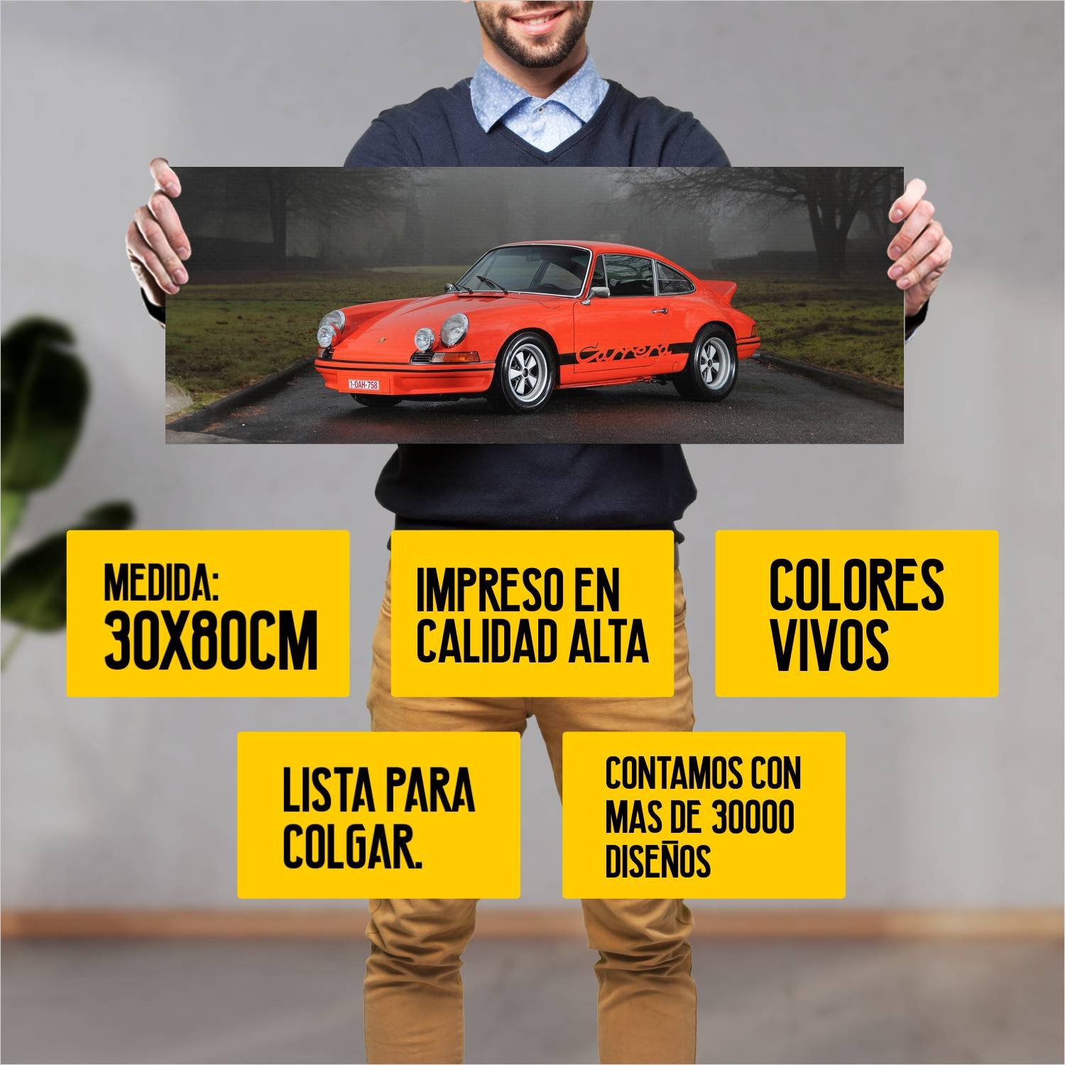 Descubre la elegancia y el estilo con nuestro cuadro impreso en canva full color de 30×80 cm. Este impresionante diseño de 1972 porsche 911 carrera rs 74 es el complemento perfecto para cualquier espacio.