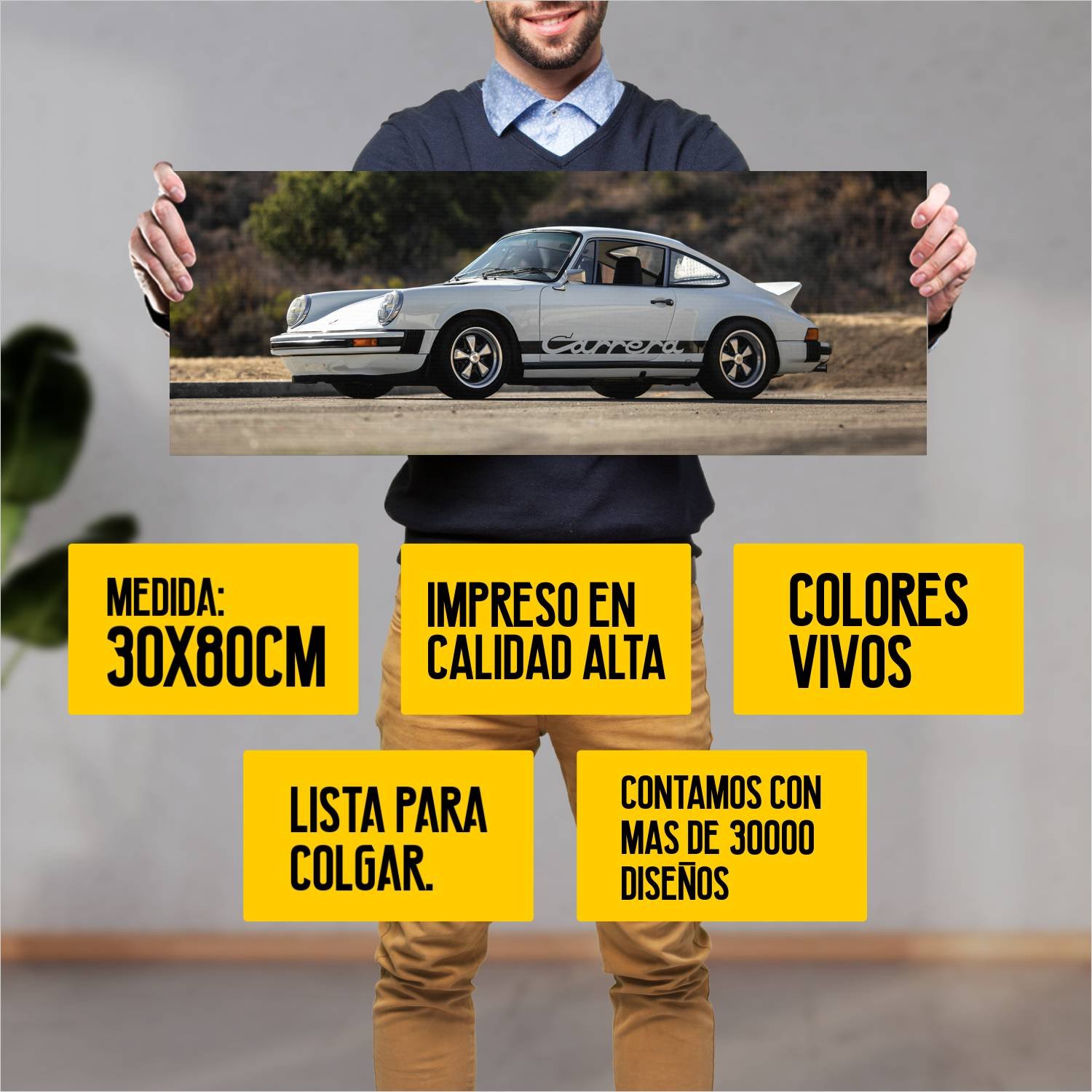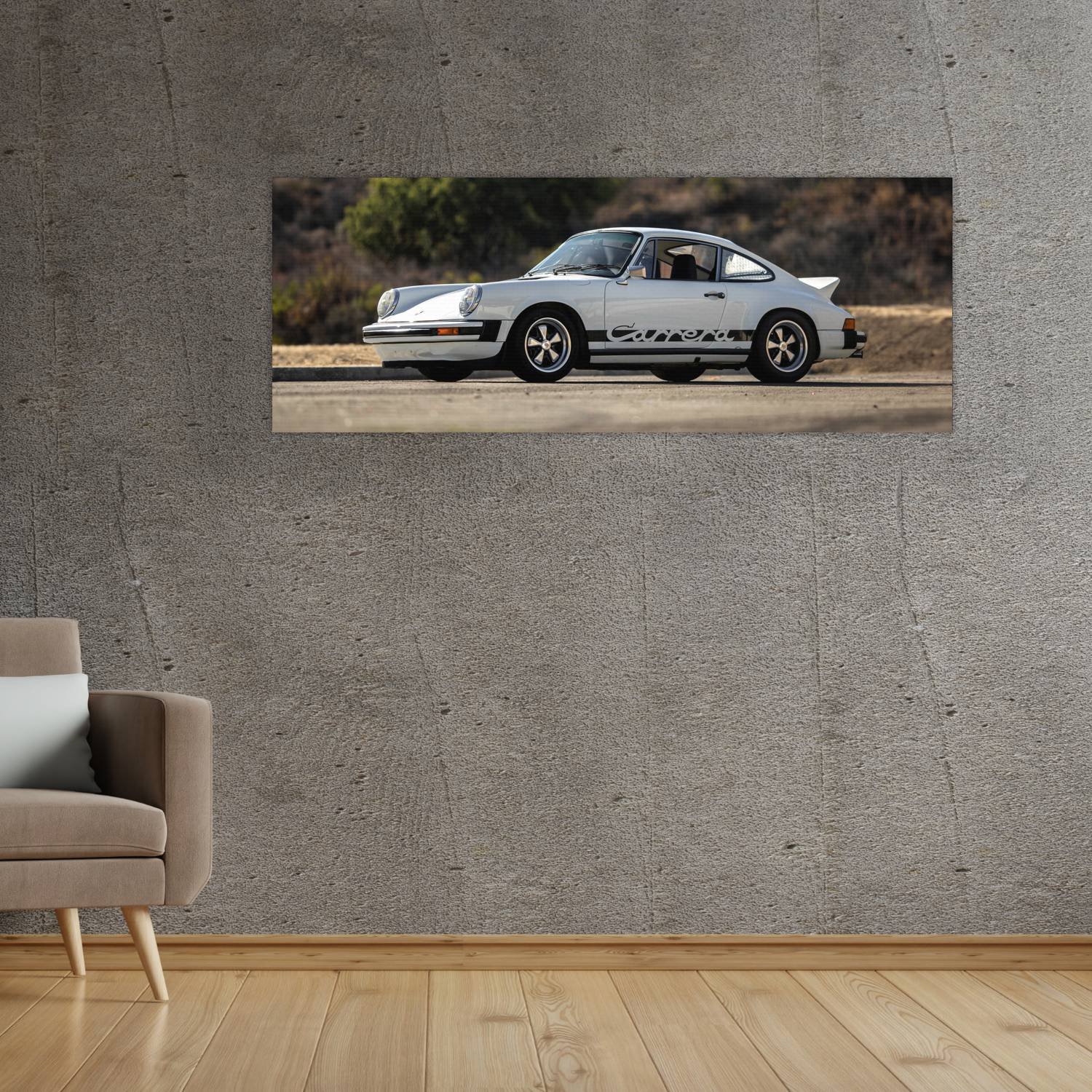 Descubre la elegancia y el estilo con nuestro cuadro impreso en canva full color de 30×80 cm. Este impresionante diseño de 1974 porsche 911 carrera wit 104 es el complemento perfecto para cualquier espacio.