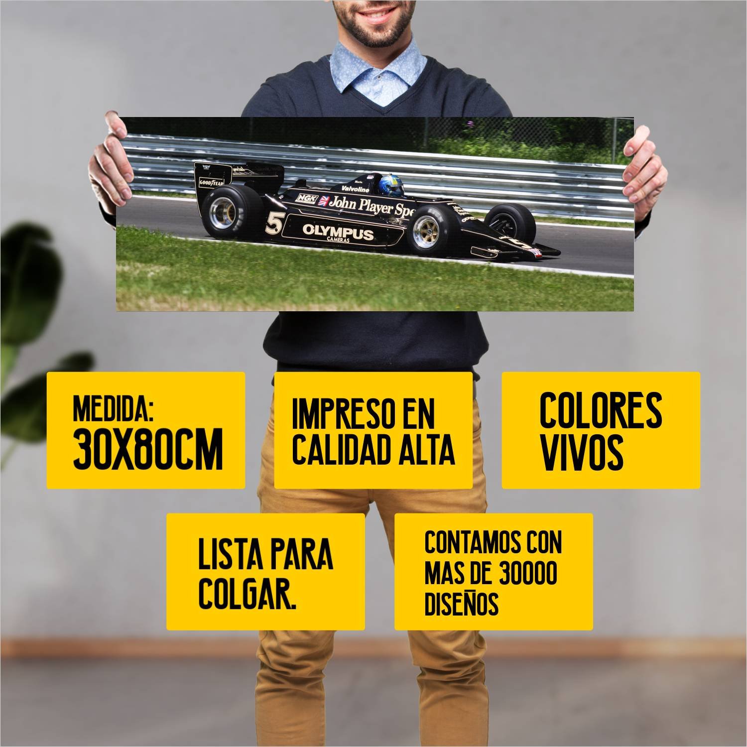 Descubre la elegancia y el estilo con nuestro cuadro impreso en canva full color de 30×80 cm. Este impresionante diseño de 1978 lotus 79 auto 35 es el complemento perfecto para cualquier espacio.