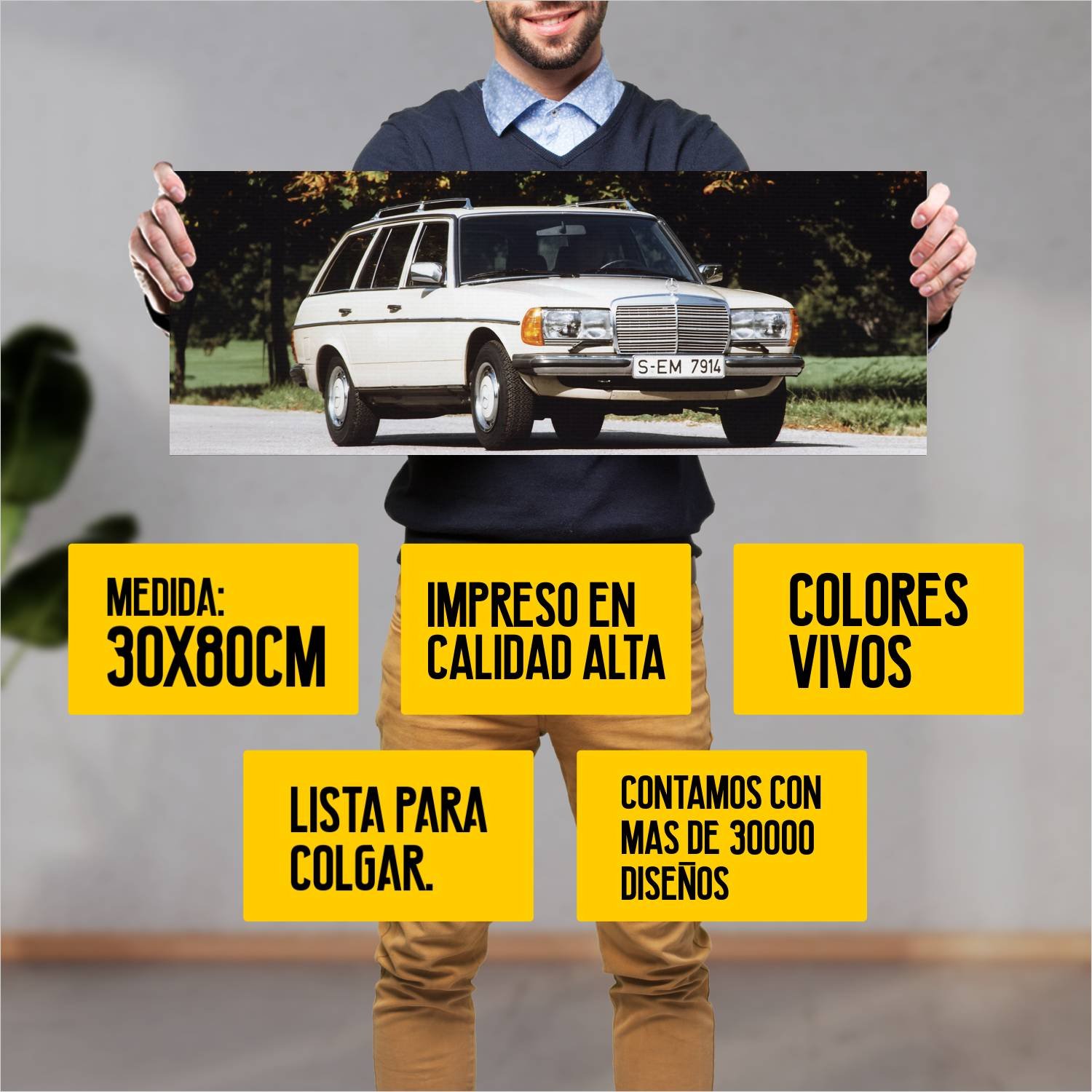 Descubre la elegancia y el estilo con nuestro cuadro impreso en canva full color de 30×80 cm. Este impresionante diseño de 1978 mercedes benz 250 t 740 84 es el complemento perfecto para cualquier espacio.