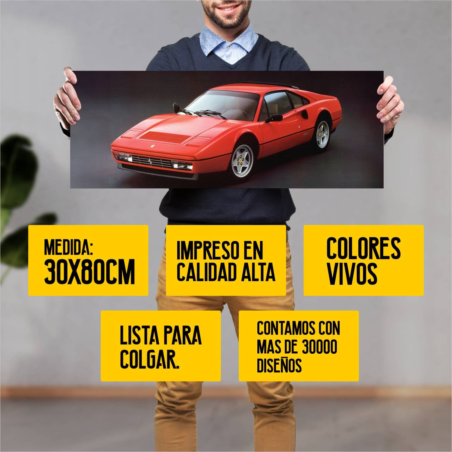 Descubre la elegancia y el estilo con nuestro cuadro impreso en canva full color de 30×80 cm. Este impresionante diseño de 1985 ferrari 328 gtb auto 199 es el complemento perfecto para cualquier espacio.
