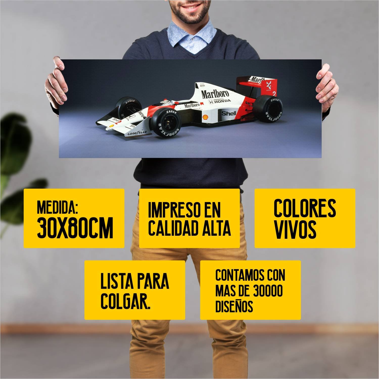Descubre la elegancia y el estilo con nuestro cuadro impreso en canva full color de 30×80 cm. Este impresionante diseño de 1989 mclaren honda mp4 5 468 13 es el complemento perfecto para cualquier espacio.