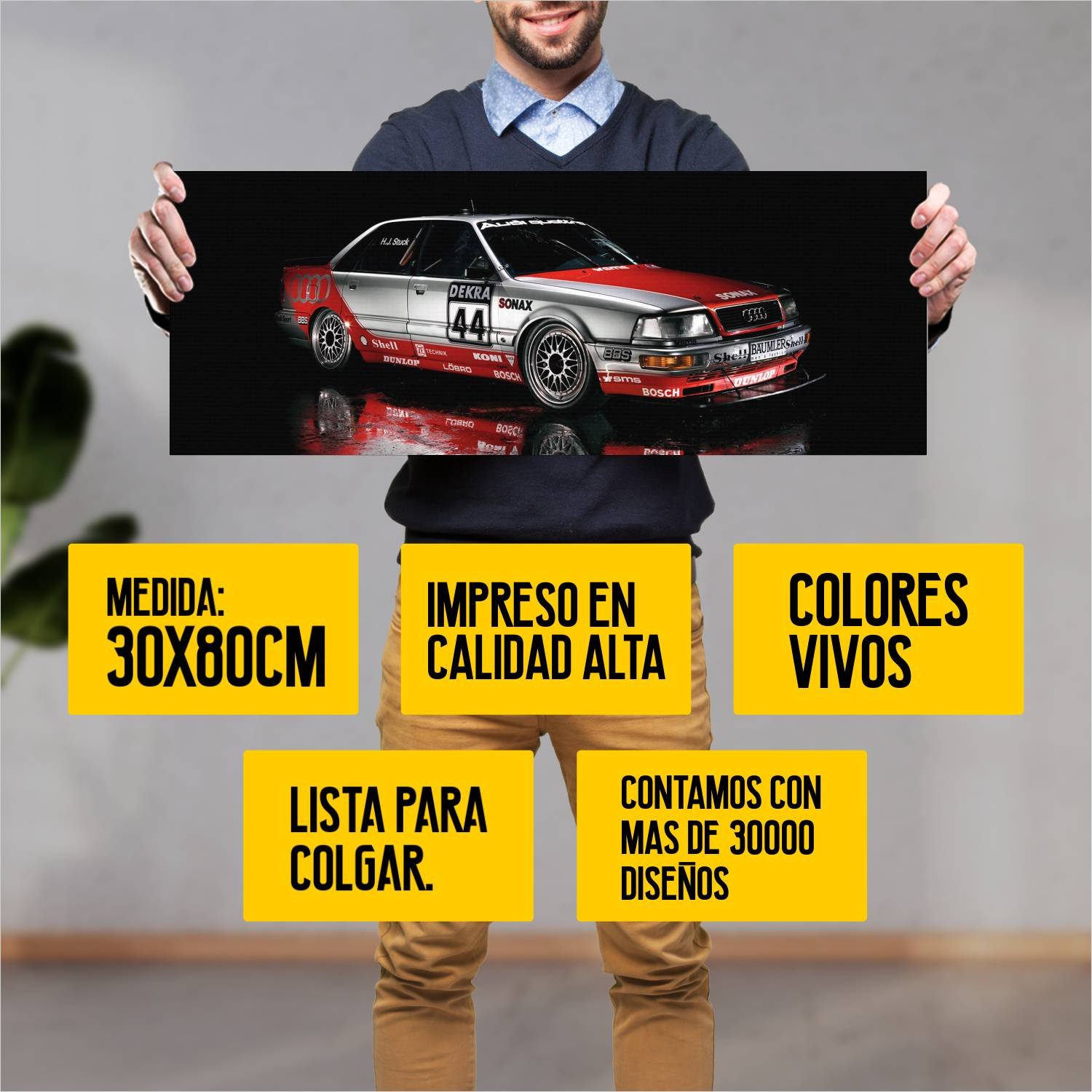 Descubre la elegancia y el estilo con nuestro cuadro impreso en canva full color de 30×80 cm. Este impresionante diseño de 1990 audi v8 dtm auto 40 es el complemento perfecto para cualquier espacio.