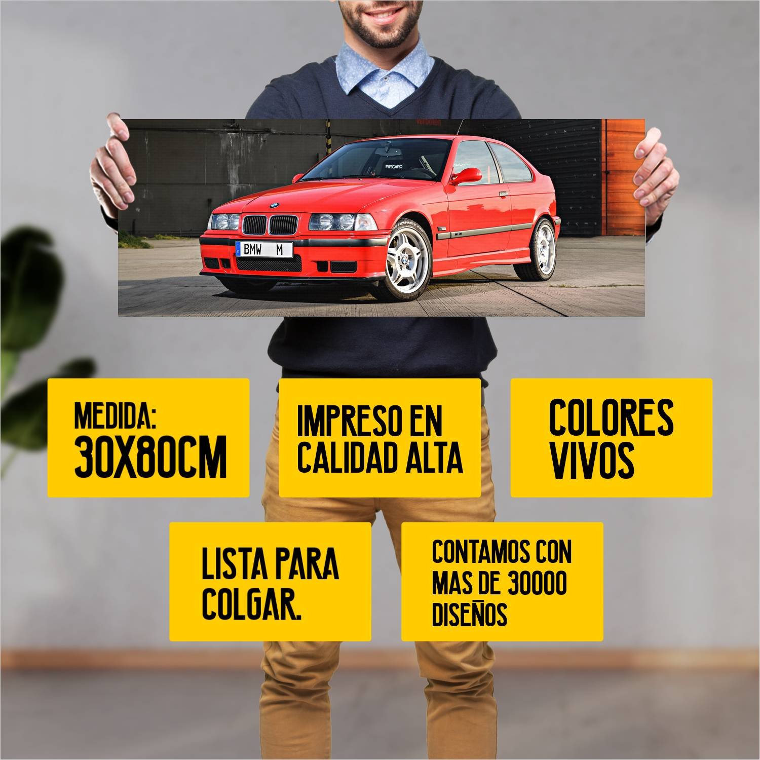 Descubre la elegancia y el estilo con nuestro cuadro impreso en canva full color de 30×80 cm. Este impresionante diseño de 1996 bmw m3 compact auto 186 es el complemento perfecto para cualquier espacio.