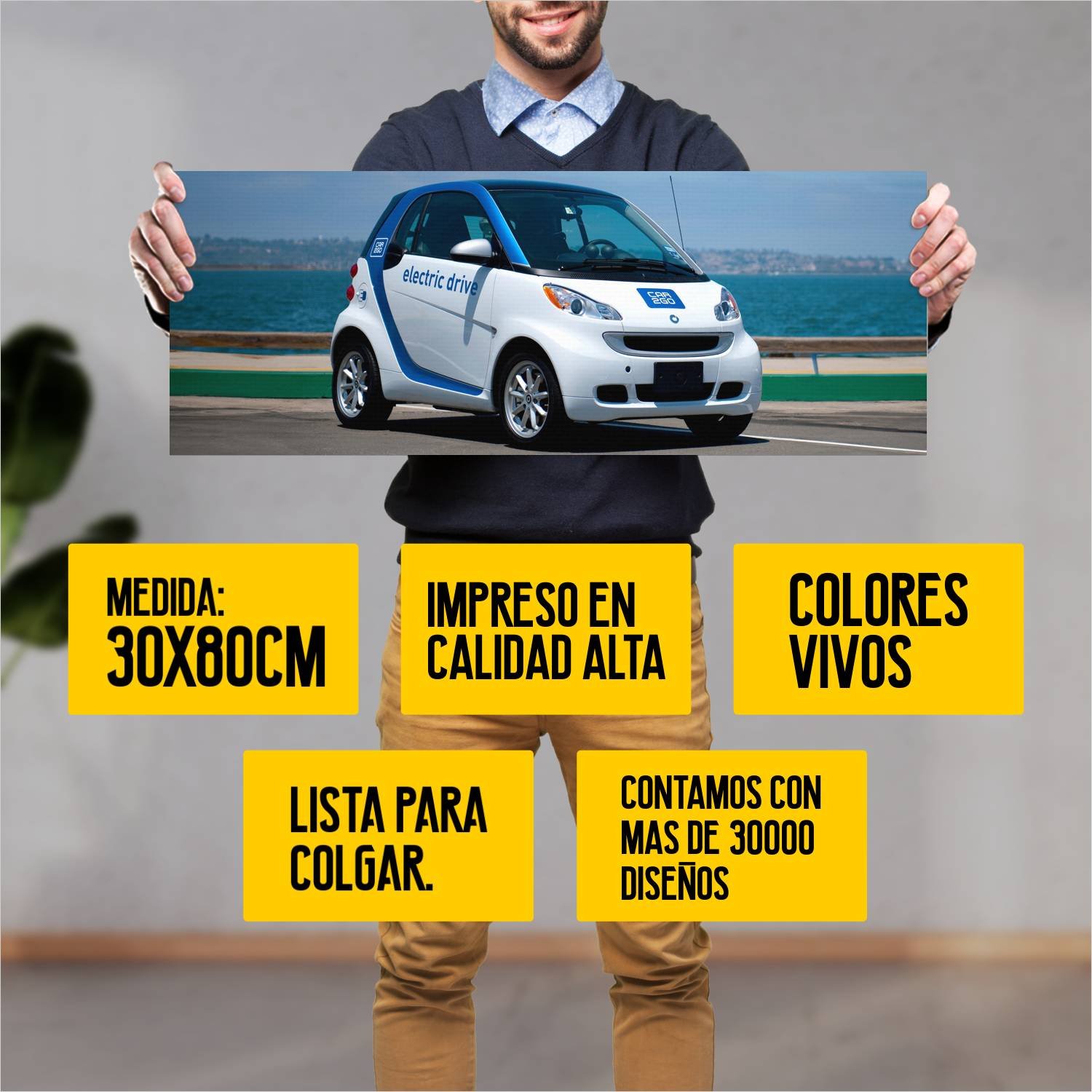 Descubre la elegancia y el estilo con nuestro cuadro impreso en canva full color de 30×80 cm. Este impresionante diseño de 2008 smart fortwo car2go ele 49 es el complemento perfecto para cualquier espacio.