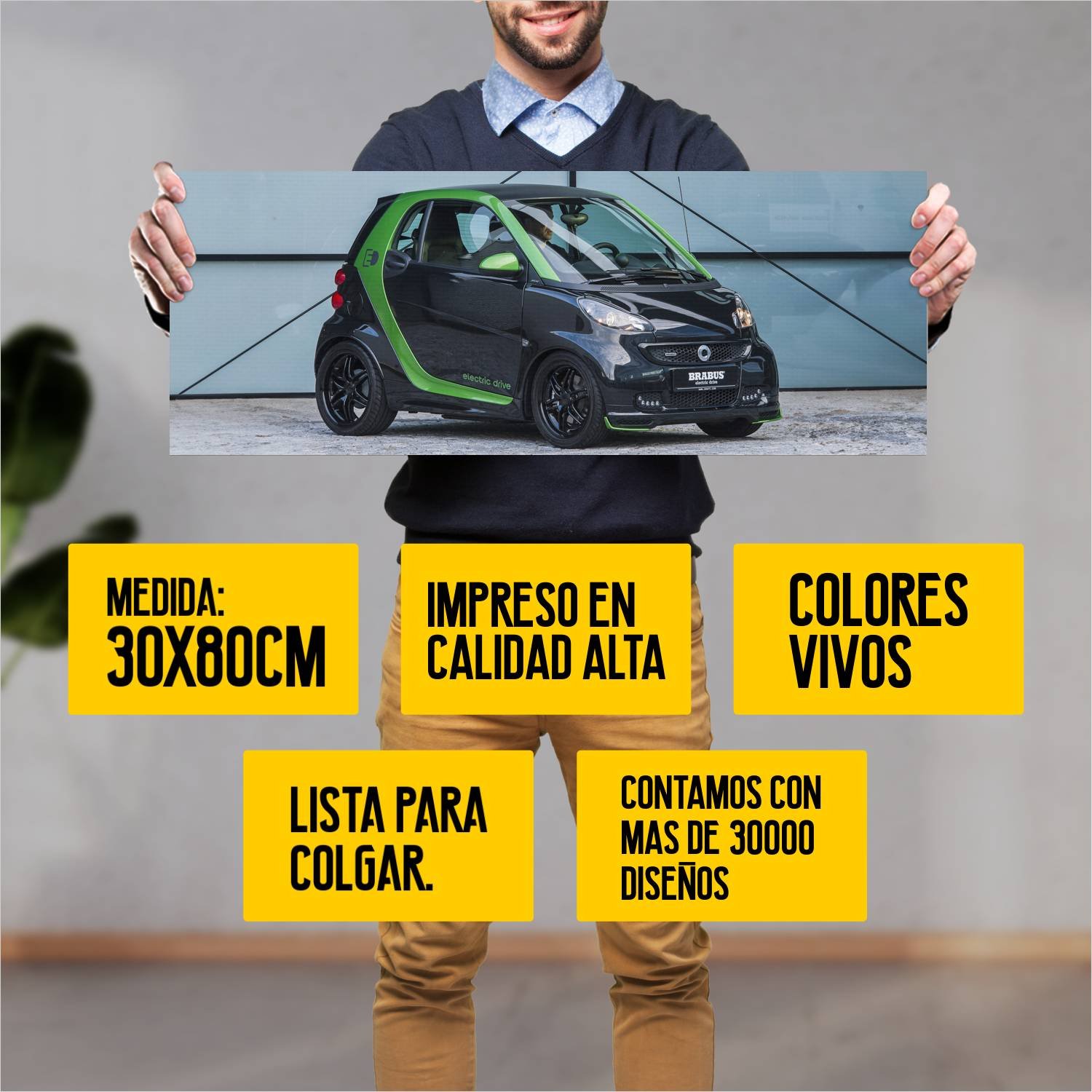 Descubre la elegancia y el estilo con nuestro cuadro impreso en canva full color de 30×80 cm. Este impresionante diseño de 2012 brabus electric drive b 81 es el complemento perfecto para cualquier espacio.
