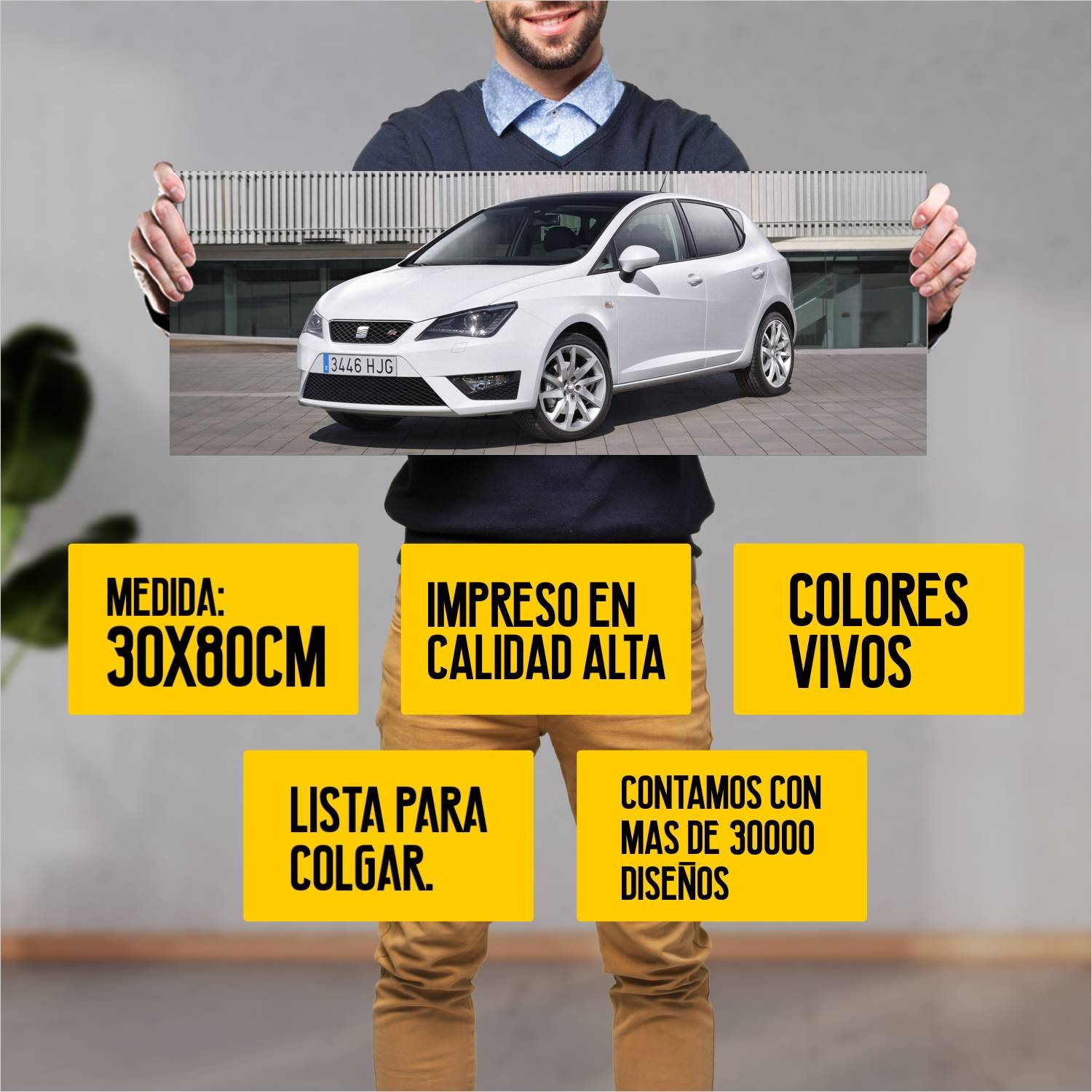 Descubre la elegancia y el estilo con nuestro cuadro impreso en canva full color de 30×80 cm. Este impresionante diseño de 2012 seat ibiza fr auto 175 es el complemento perfecto para cualquier espacio.