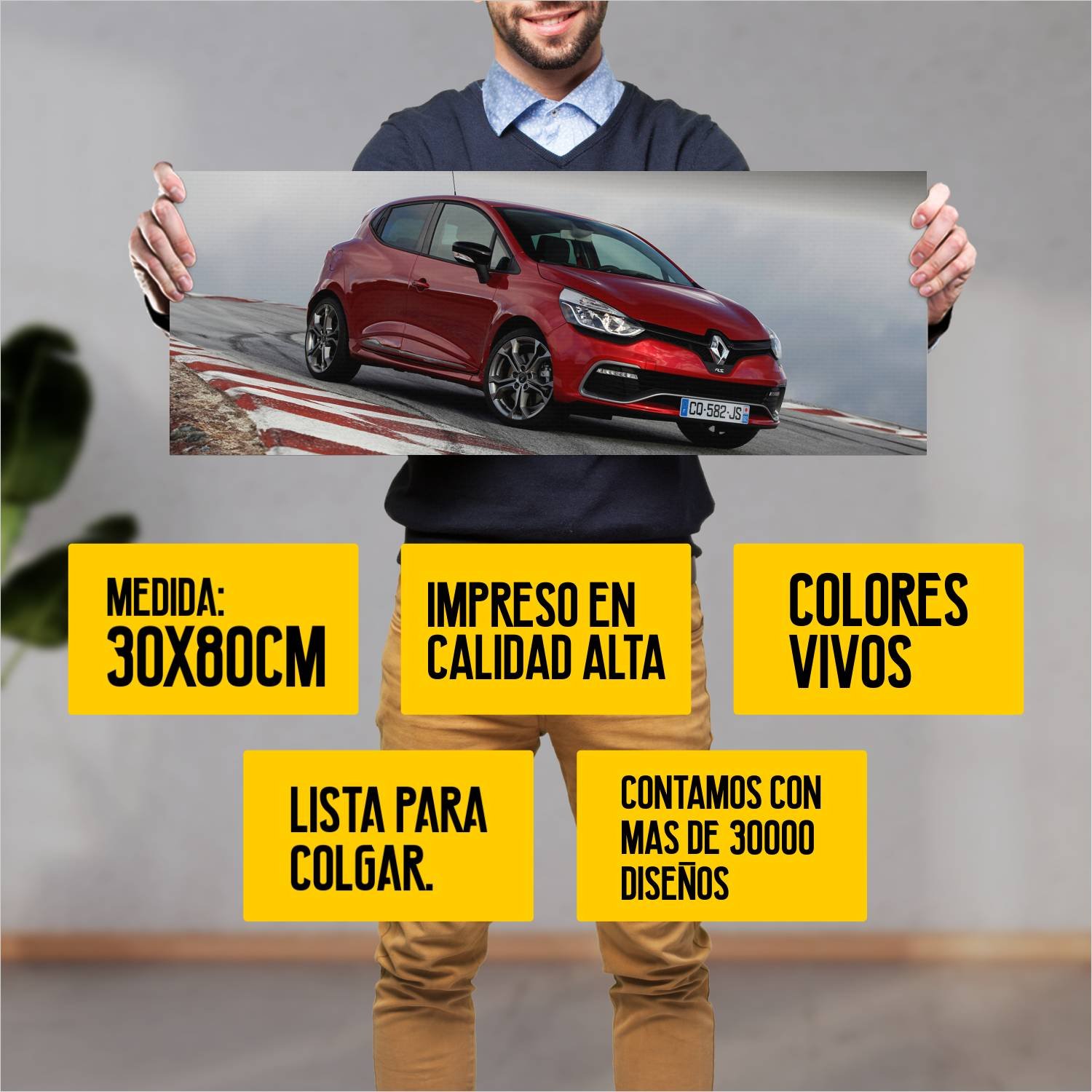 Descubre la elegancia y el estilo con nuestro cuadro impreso en canva full color de 30×80 cm. Este impresionante diseño de 2013 renault clio r s 200 80 51 es el complemento perfecto para cualquier espacio.