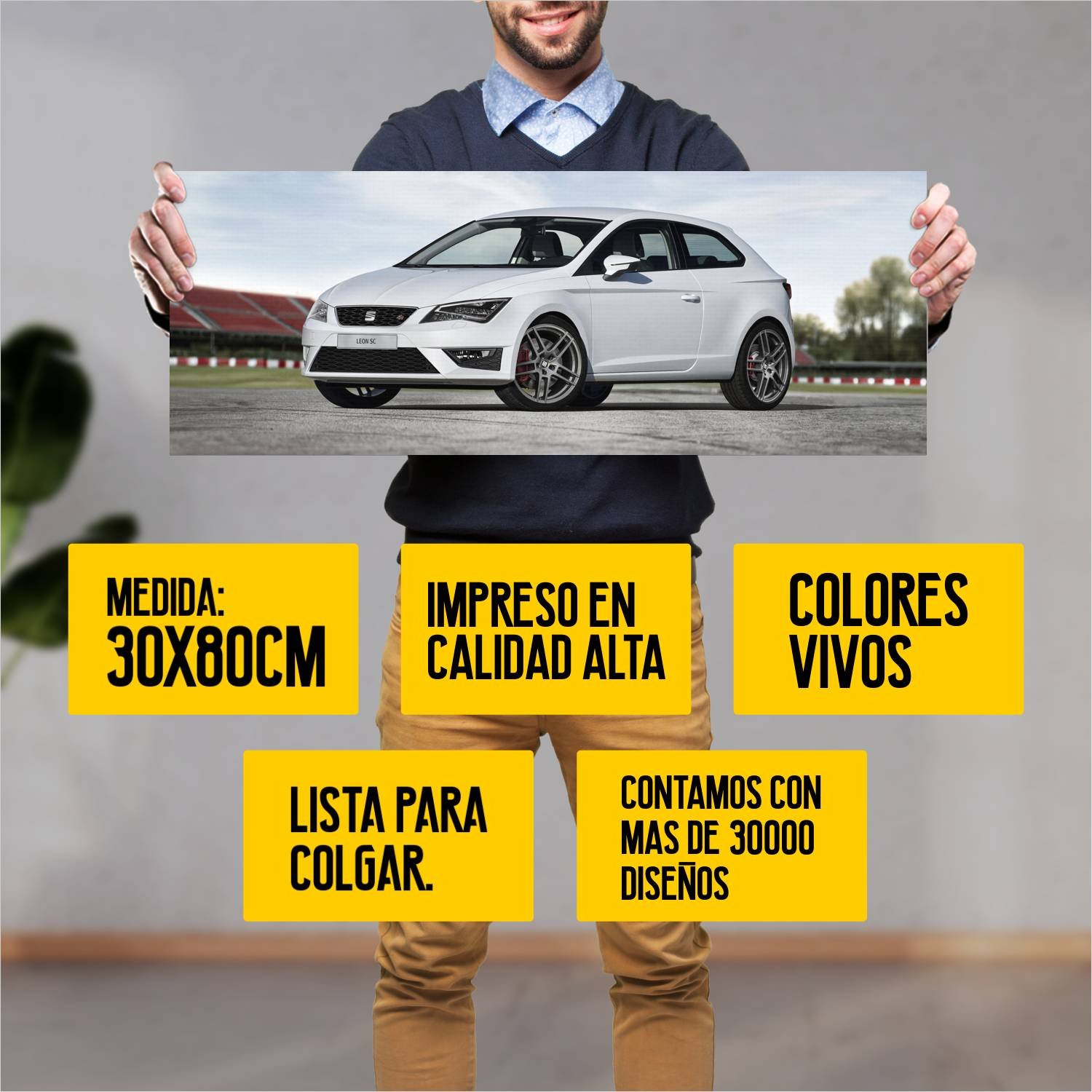 Descubre la elegancia y el estilo con nuestro cuadro impreso en canva full color de 30×80 cm. Este impresionante diseño de 2013 seat leon sc fr auto 215 es el complemento perfecto para cualquier espacio.