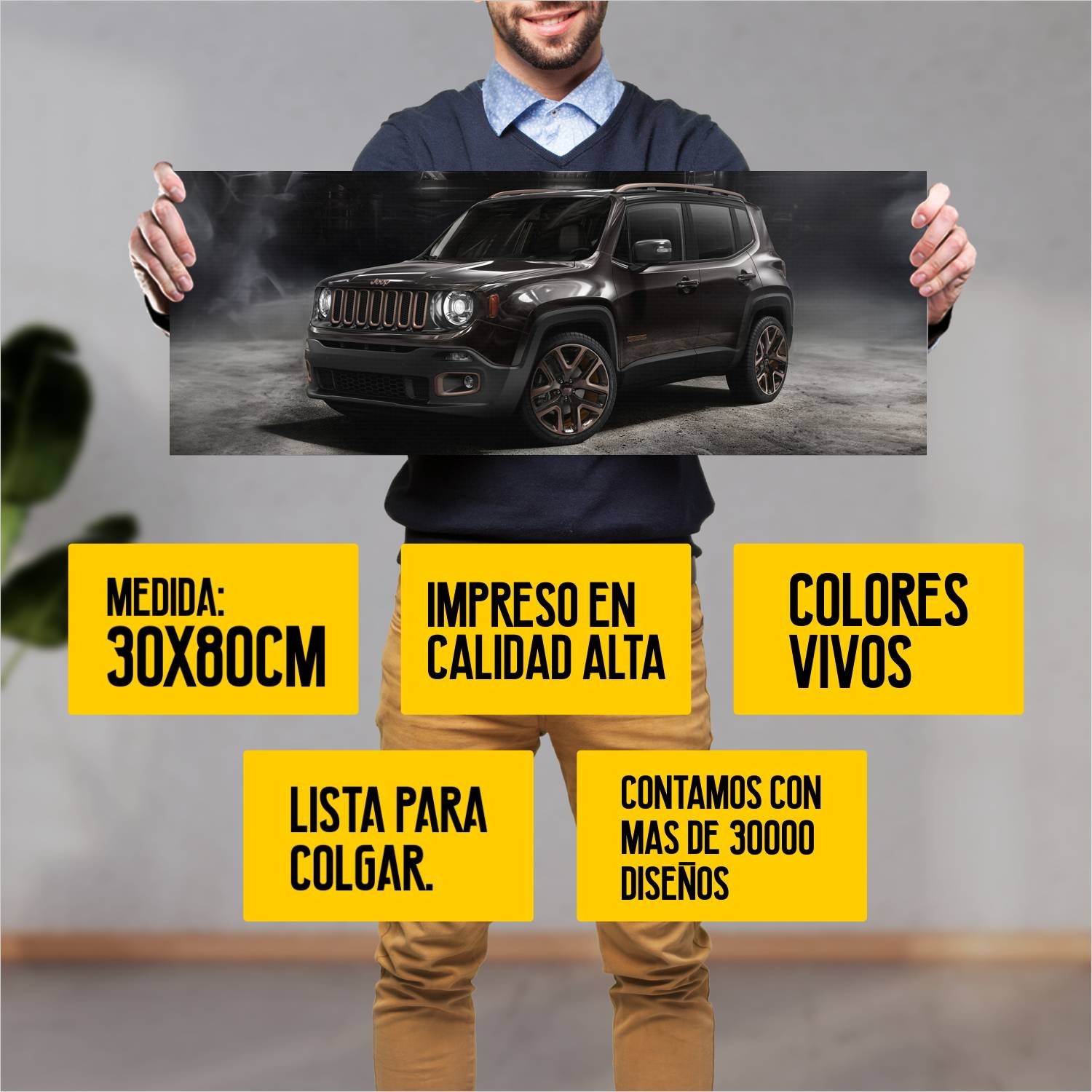 Descubre la elegancia y el estilo con nuestro cuadro impreso en canva full color de 30×80 cm. Este impresionante diseño de 2014 jeep renegade zi you xi 60 es el complemento perfecto para cualquier espacio.