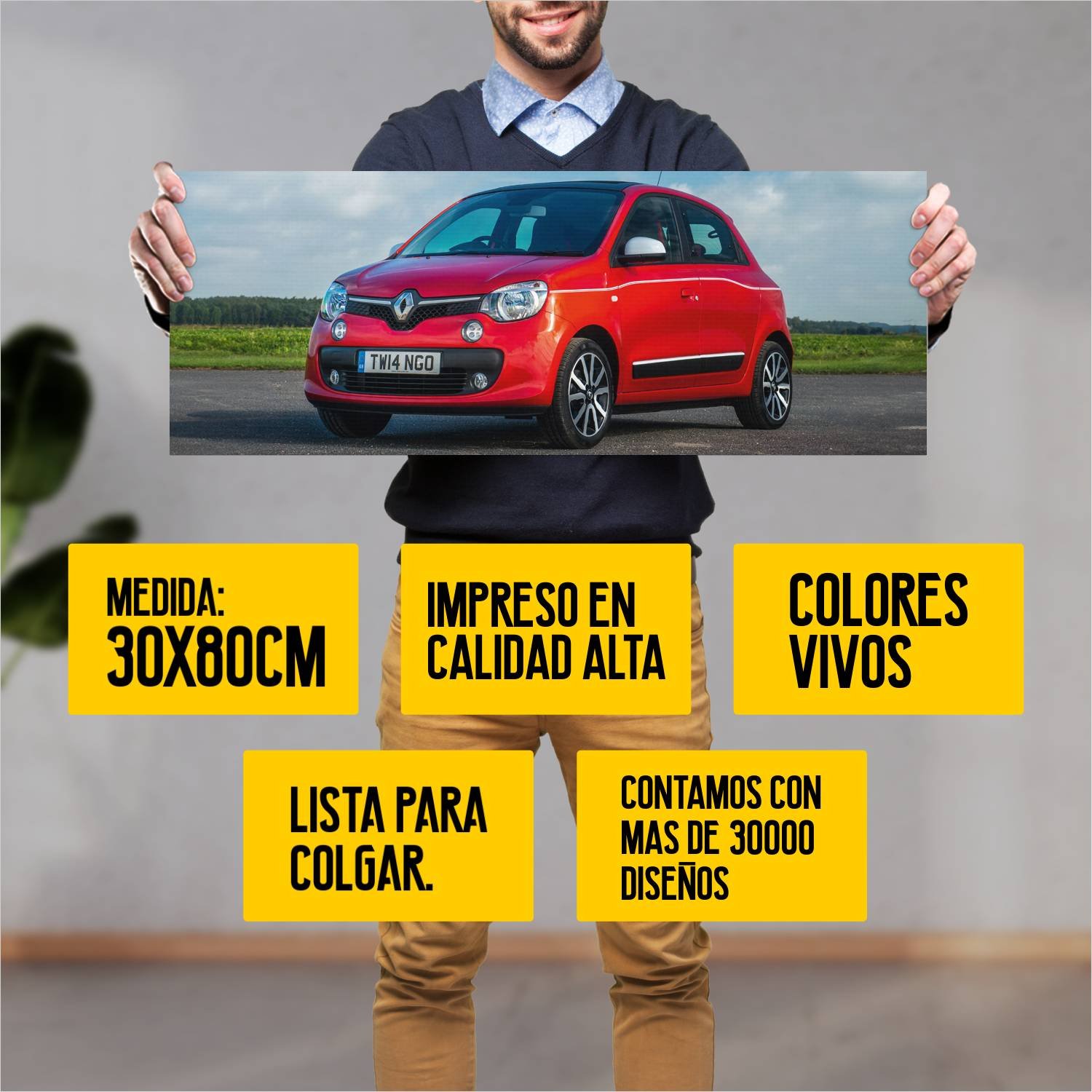 Descubre la elegancia y el estilo con nuestro cuadro impreso en canva full color de 30×80 cm. Este impresionante diseño de 2014 renault twingo dynamiqu 65 es el complemento perfecto para cualquier espacio.