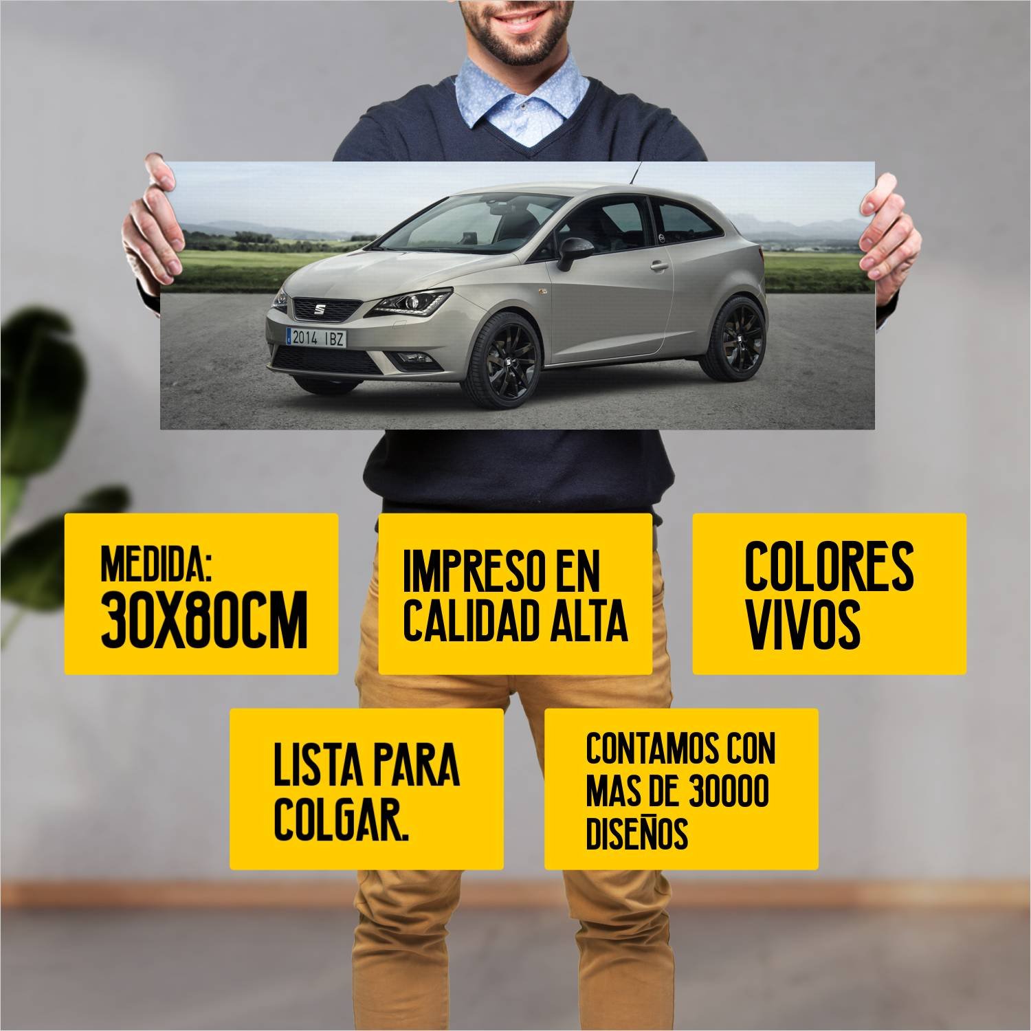 Descubre la elegancia y el estilo con nuestro cuadro impreso en canva full color de 30×80 cm. Este impresionante diseño de 2014 seat ibiza 30 aniversar 227 es el complemento perfecto para cualquier espacio.