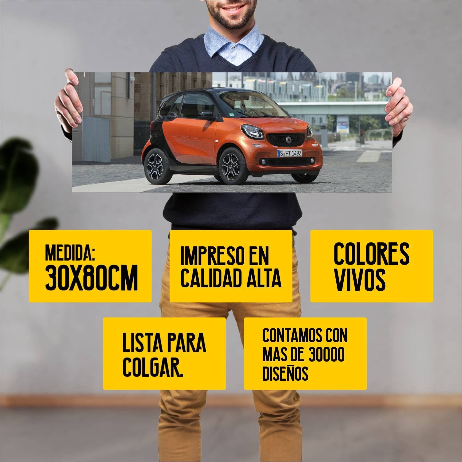 Descubre la elegancia y el estilo con nuestro cuadro impreso en canva full color de 30×80 cm. Este impresionante diseño de 2014 smart fortwo prime es el complemento perfecto para cualquier espacio.