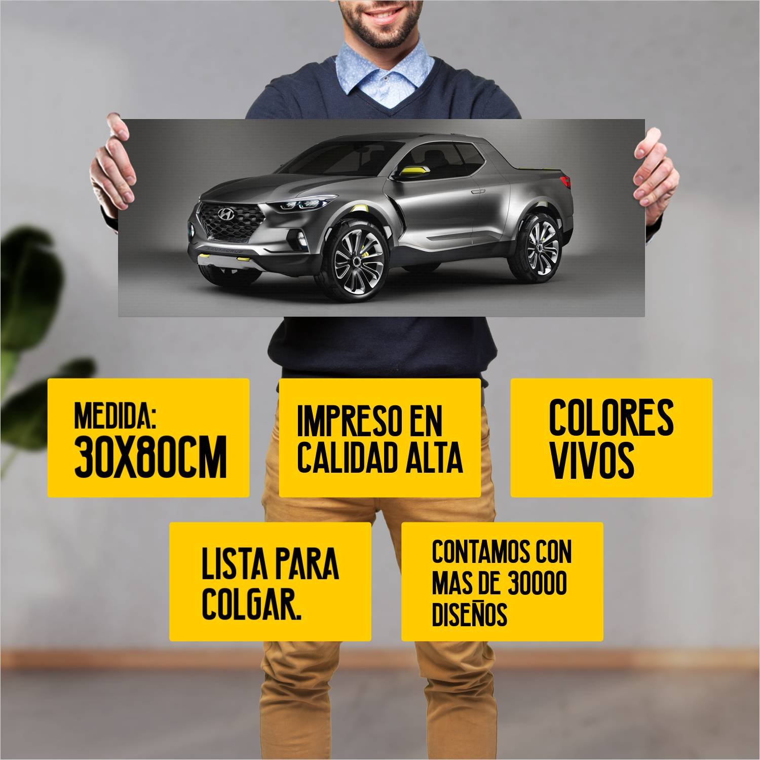 Descubre la elegancia y el estilo con nuestro cuadro impreso en canva full color de 30×80 cm. Este impresionante diseño de 2015 hyundai santa cruz conc 75 es el complemento perfecto para cualquier espacio.