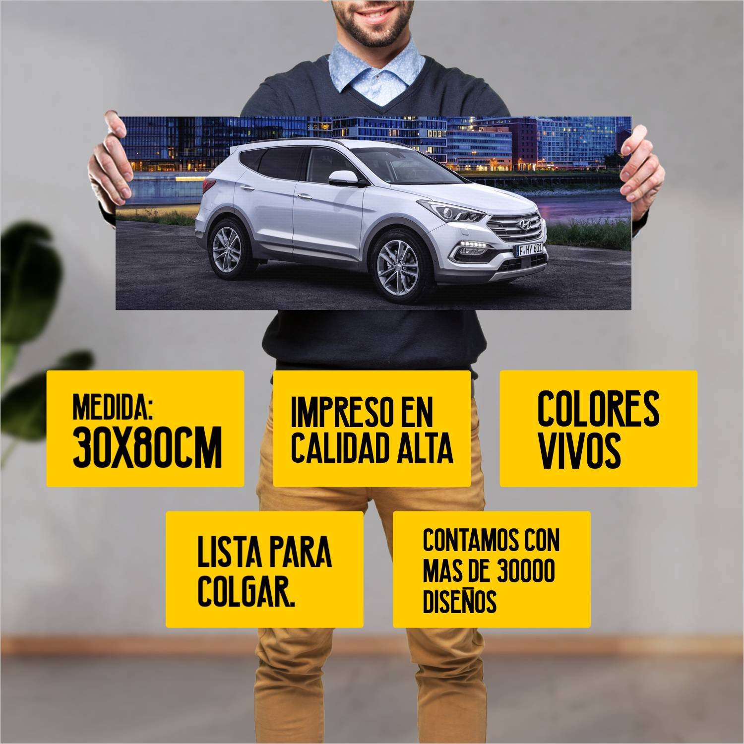 Descubre la elegancia y el estilo con nuestro cuadro impreso en canva full color de 30×80 cm. Este impresionante diseño de 2015 hyundai santa fe auto 76 es el complemento perfecto para cualquier espacio.