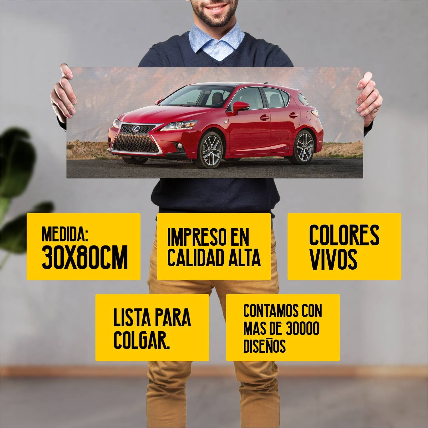 Descubre la elegancia y el estilo con nuestro cuadro impreso en canva full color de 30×80 cm. Este impresionante diseño de 2015 lexus ct hybrid f sport 392 es el complemento perfecto para cualquier espacio.