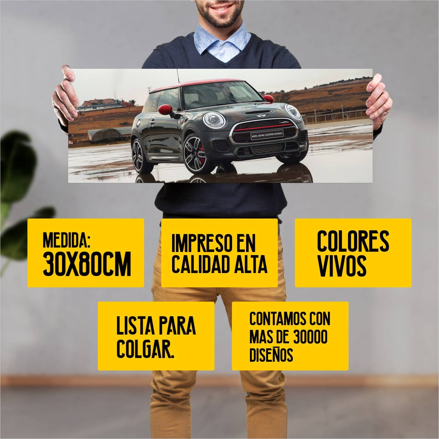 Descubre la elegancia y el estilo con nuestro cuadro impreso en canva full color de 30×80 cm. Este impresionante diseño de 2015 mini john cooper works 241 es el complemento perfecto para cualquier espacio.
