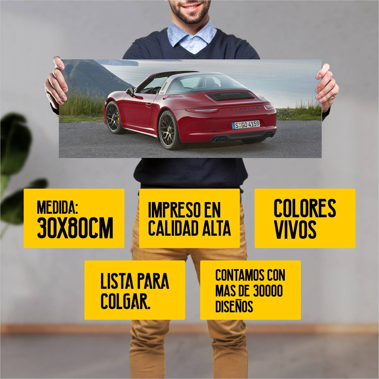 Descubre la elegancia y el estilo con nuestro cuadro impreso en canva full color de 30×80 cm. Este impresionante diseño de 2015 porsche 911 targa gts 1 912 es el complemento perfecto para cualquier espacio.