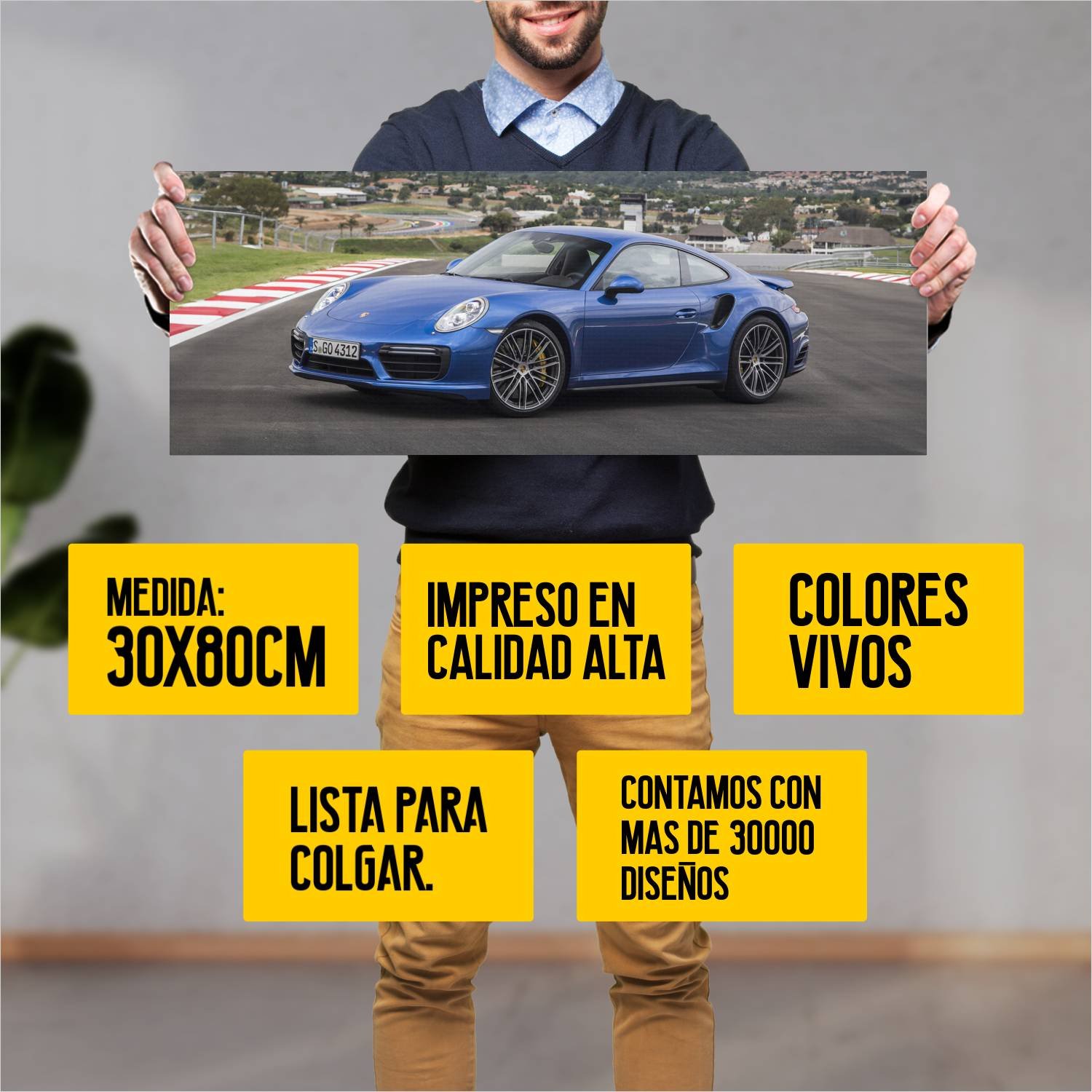Descubre la elegancia y el estilo con nuestro cuadro impreso en canva full color de 30×80 cm. Este impresionante diseño de 2016 porsche 911 turbo auto 1 es el complemento perfecto para cualquier espacio.