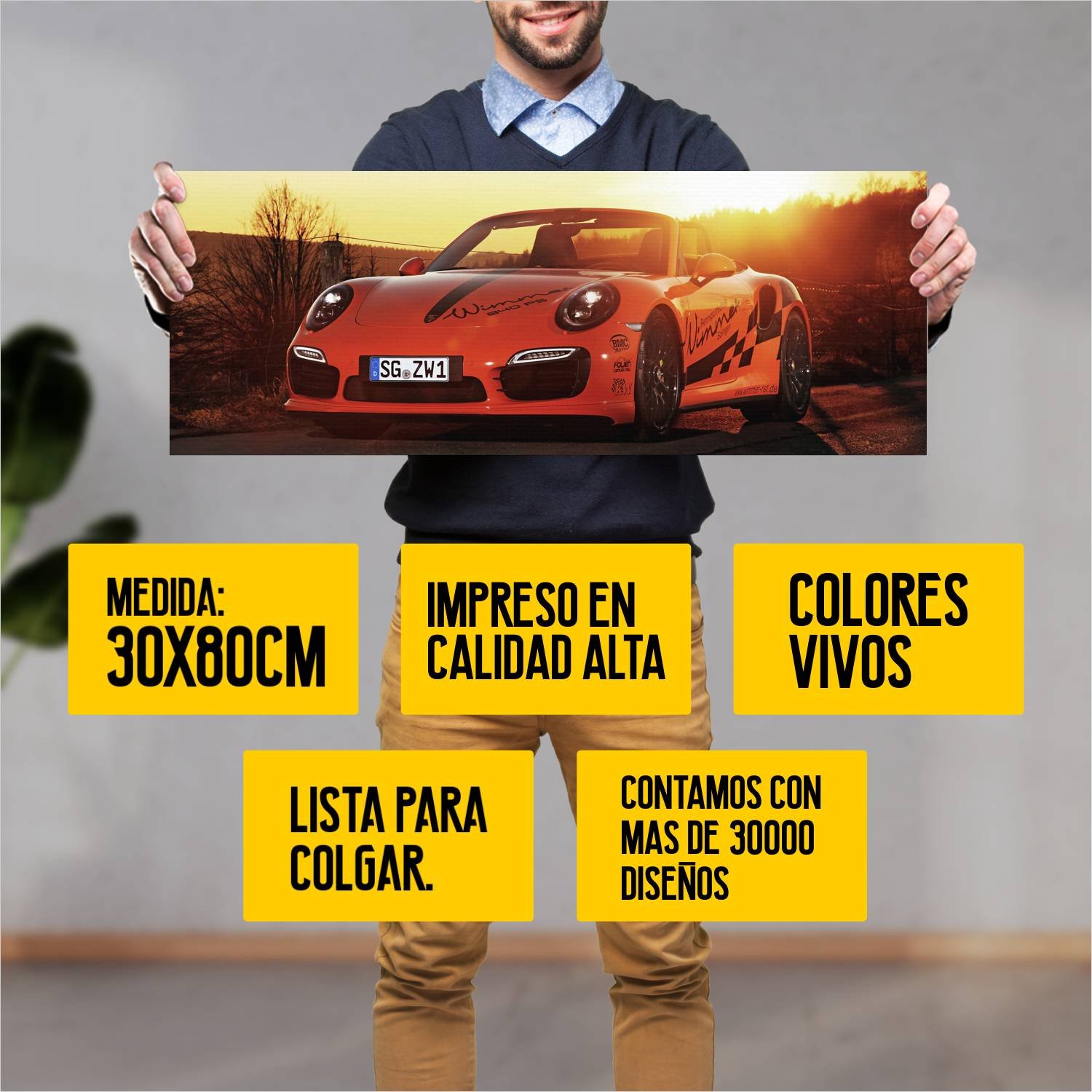 Descubre la elegancia y el estilo con nuestro cuadro impreso en canva full color de 30×80 cm. Este impresionante diseño de 2016 porsche 911 turbo s cab 13 es el complemento perfecto para cualquier espacio.