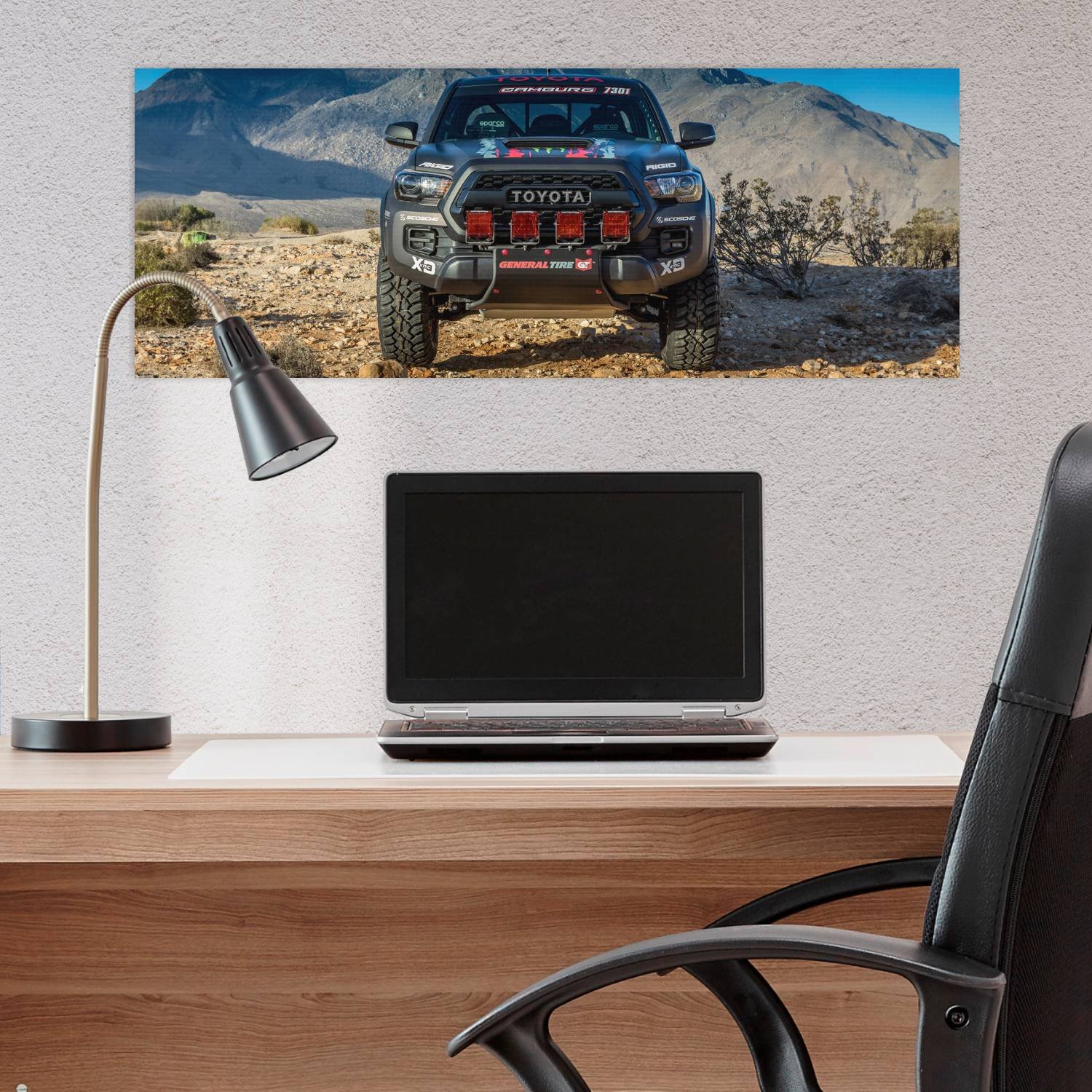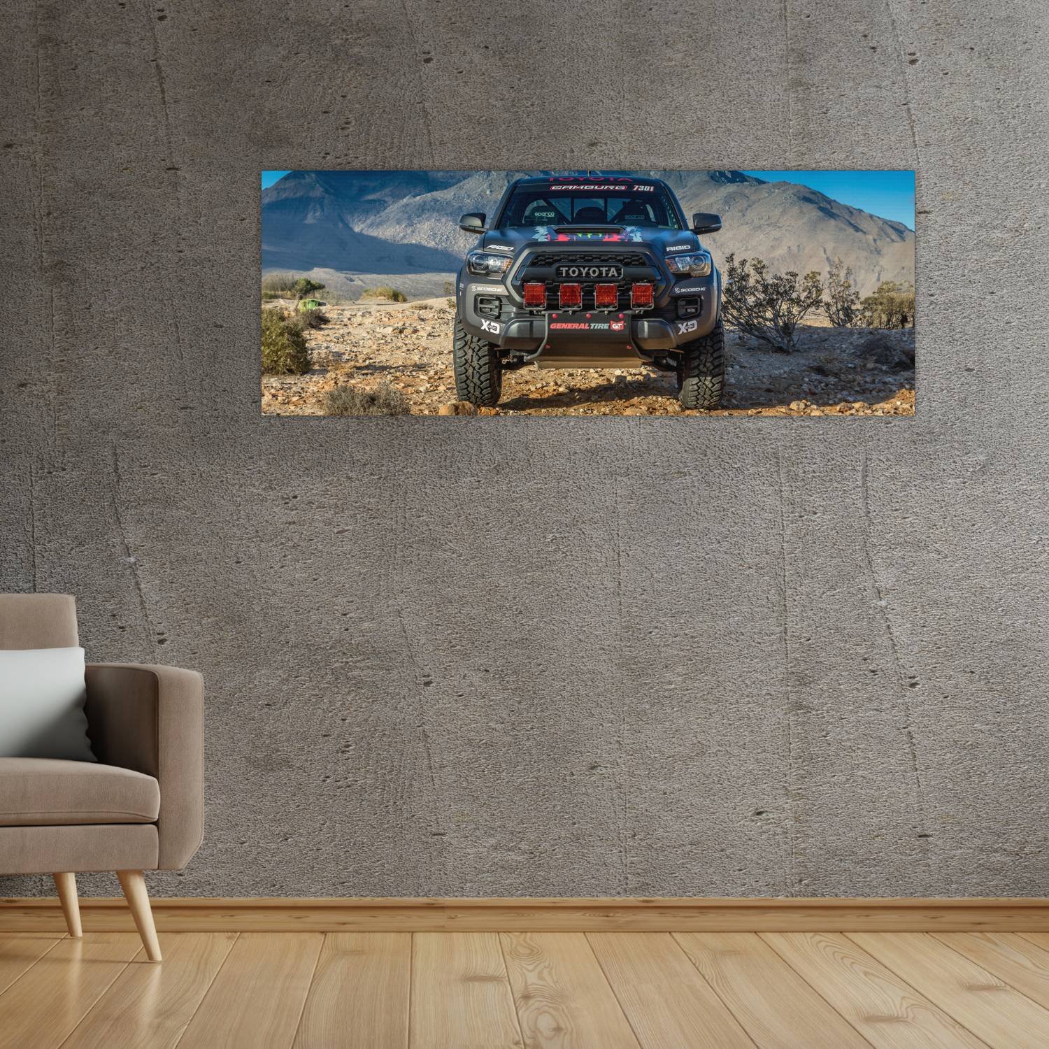 Descubre la elegancia y el estilo con nuestro cuadro impreso en canva full color de 30×80 cm. Este impresionante diseño de 2016 toyota tacoma trd pro r 125 es el complemento perfecto para cualquier espacio.