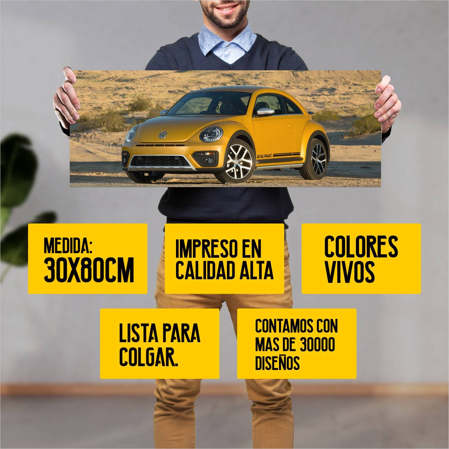 Descubre la elegancia y el estilo con nuestro cuadro impreso en canva full color de 30×80 cm. Este impresionante diseño de 2016 volkswagen beetle dune 293 es el complemento perfecto para cualquier espacio.