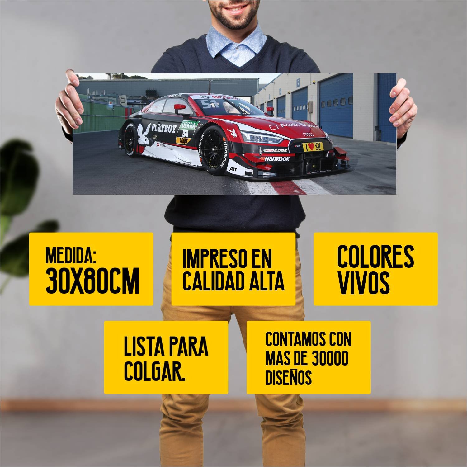 Descubre la elegancia y el estilo con nuestro cuadro impreso en canva full color de 30×80 cm. Este impresionante diseño de 2017 audi rs 5 dtm auto 324 es el complemento perfecto para cualquier espacio.