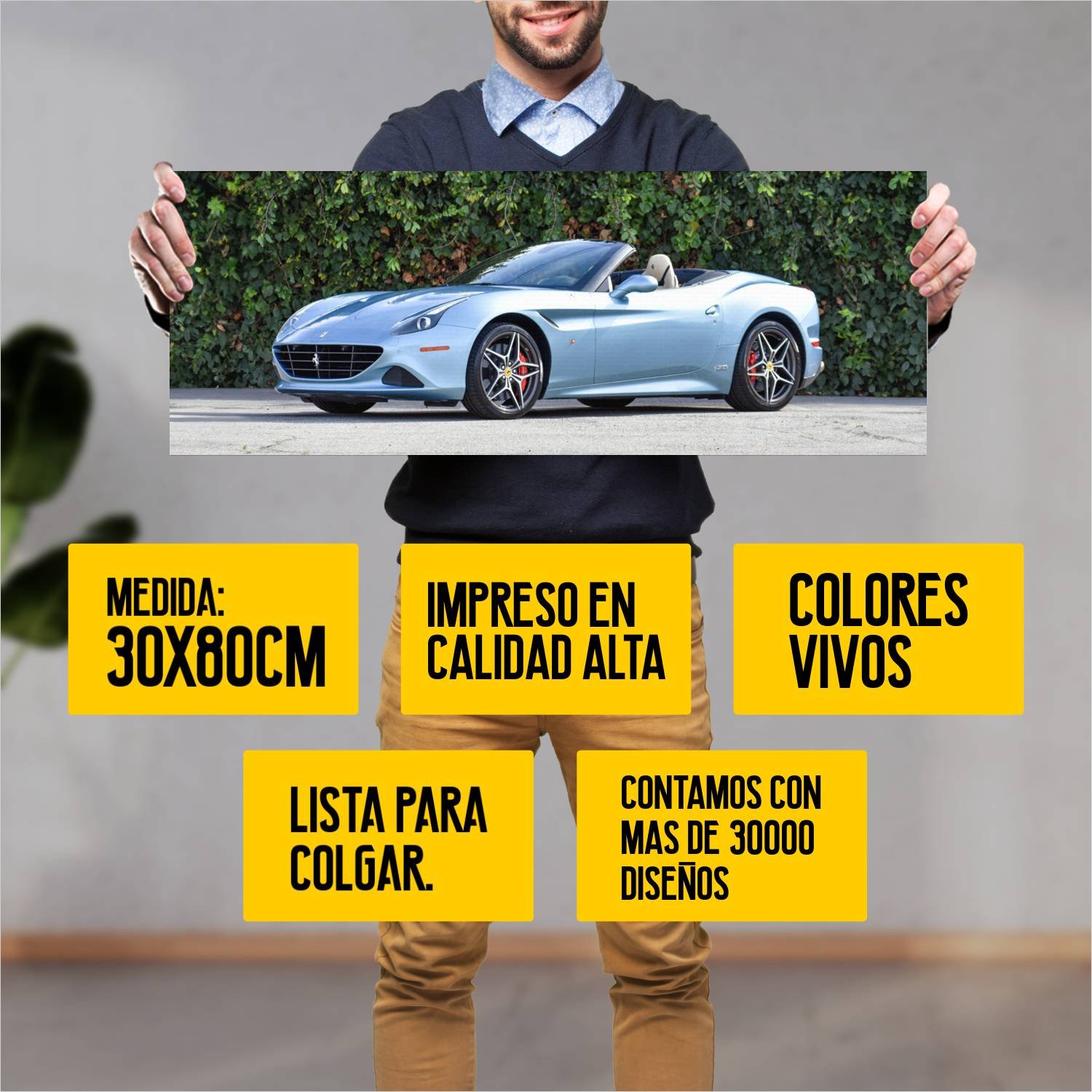 Descubre la elegancia y el estilo con nuestro cuadro impreso en canva full color de 30×80 cm. Este impresionante diseño de 2017 ferrari california t th 650 es el complemento perfecto para cualquier espacio.