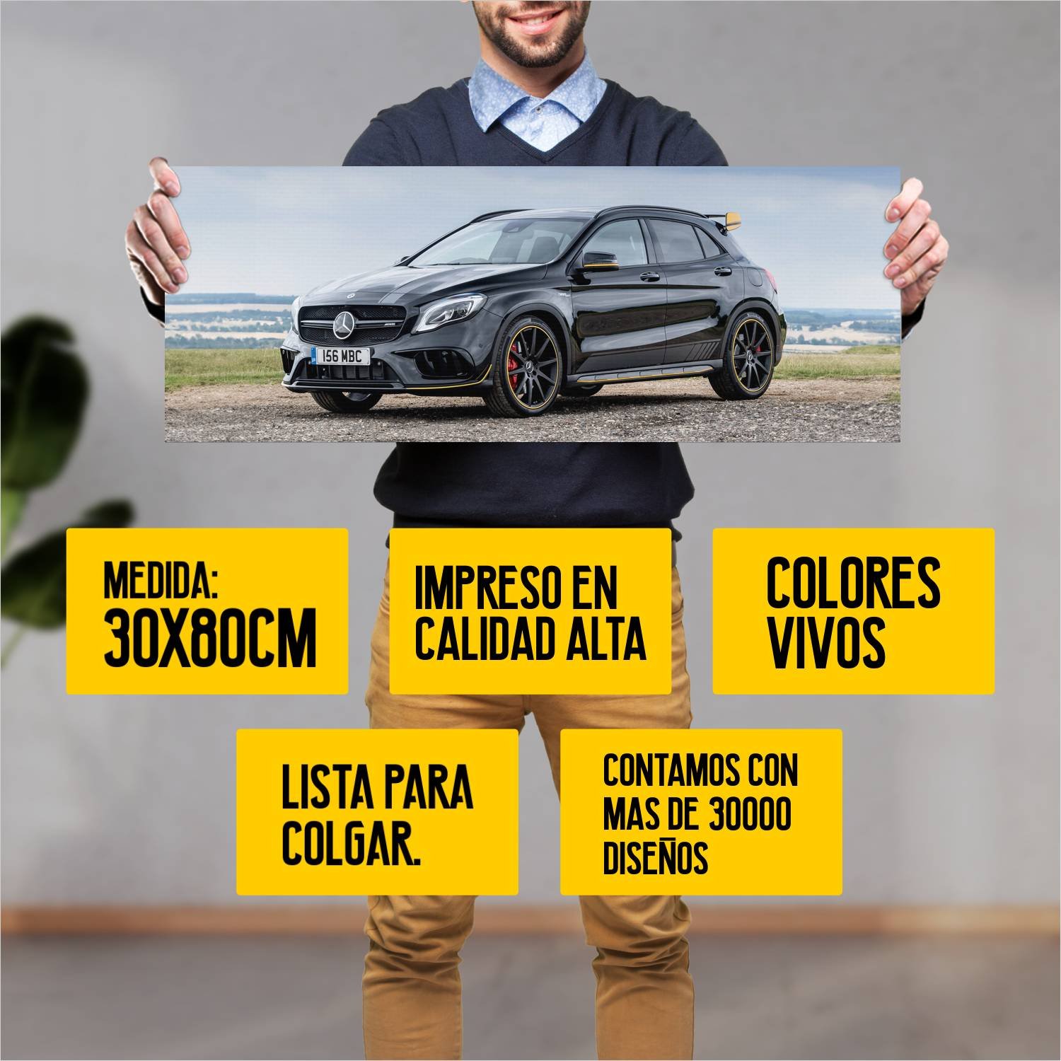 Descubre la elegancia y el estilo con nuestro cuadro impreso en canva full color de 30×80 cm. Este impresionante diseño de 2017 mercedes amg gla 45 yel 782 es el complemento perfecto para cualquier espacio.