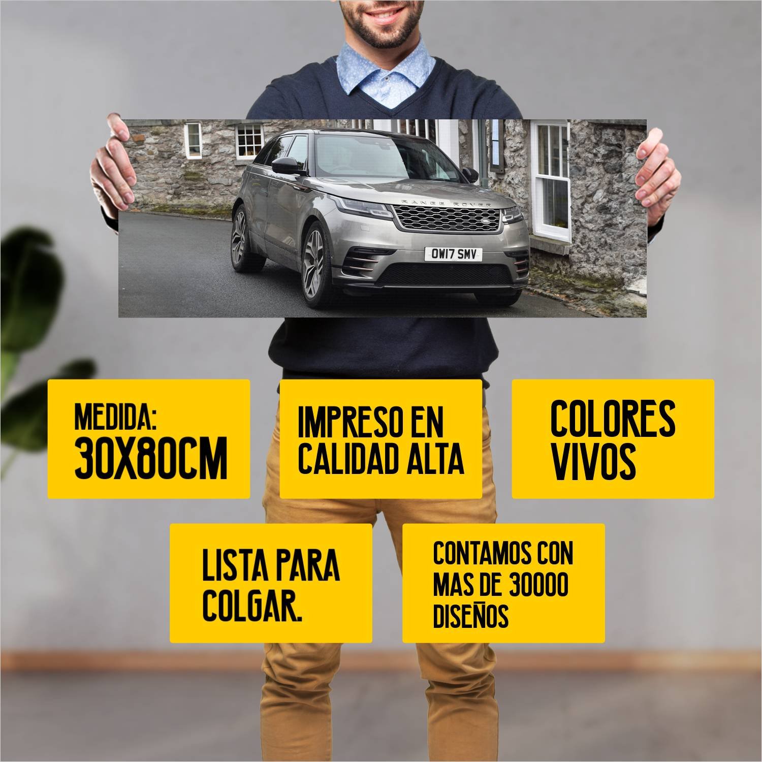 Descubre la elegancia y el estilo con nuestro cuadro impreso en canva full color de 30×80 cm. Este impresionante diseño de 2017 range rover velar r dyn 362 es el complemento perfecto para cualquier espacio.