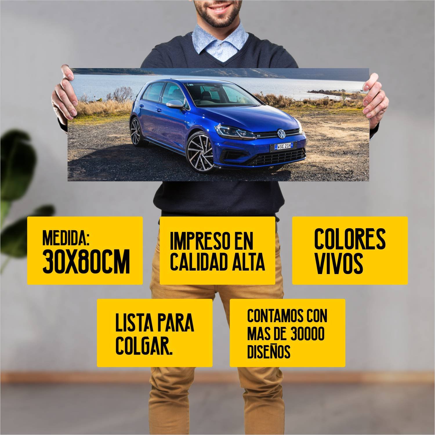 Descubre la elegancia y el estilo con nuestro cuadro impreso en canva full color de 30×80 cm. Este impresionante diseño de 2017 volkswagen golf r 5 doo 479 es el complemento perfecto para cualquier espacio.