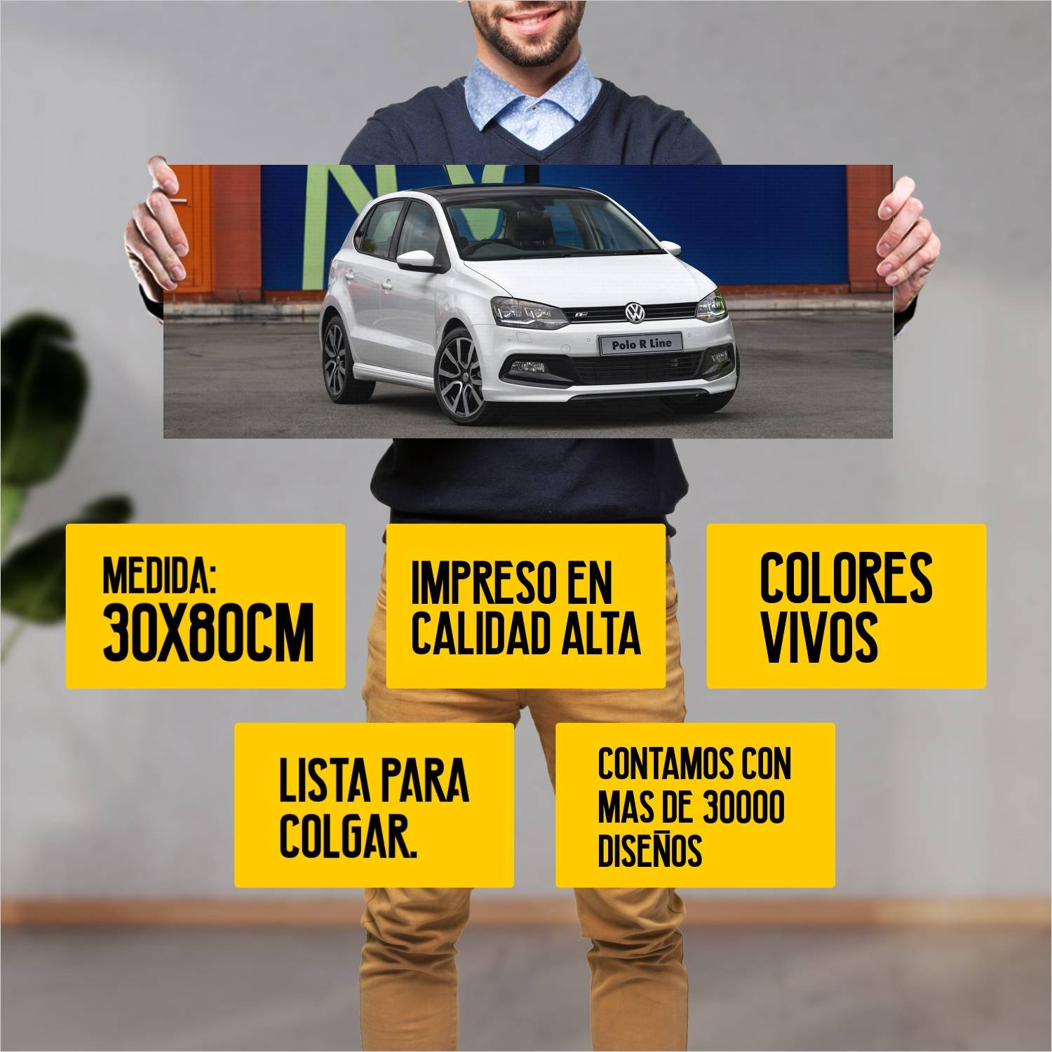 Descubre la elegancia y el estilo con nuestro cuadro impreso en canva full color de 30×80 cm. Este impresionante diseño de 2017 volkswagen polo r line 505 es el complemento perfecto para cualquier espacio.