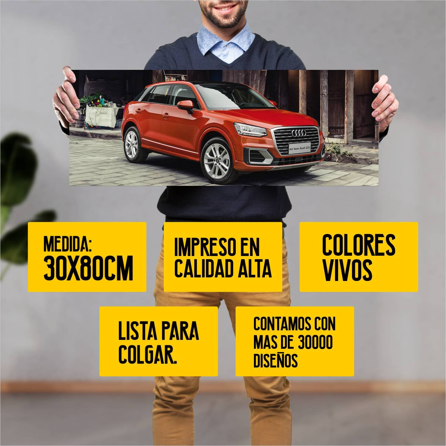 Descubre la elegancia y el estilo con nuestro cuadro impreso en canva full color de 30×80 cm. Este impresionante diseño de 2018 audi q2 l cn auto 400 es el complemento perfecto para cualquier espacio.
