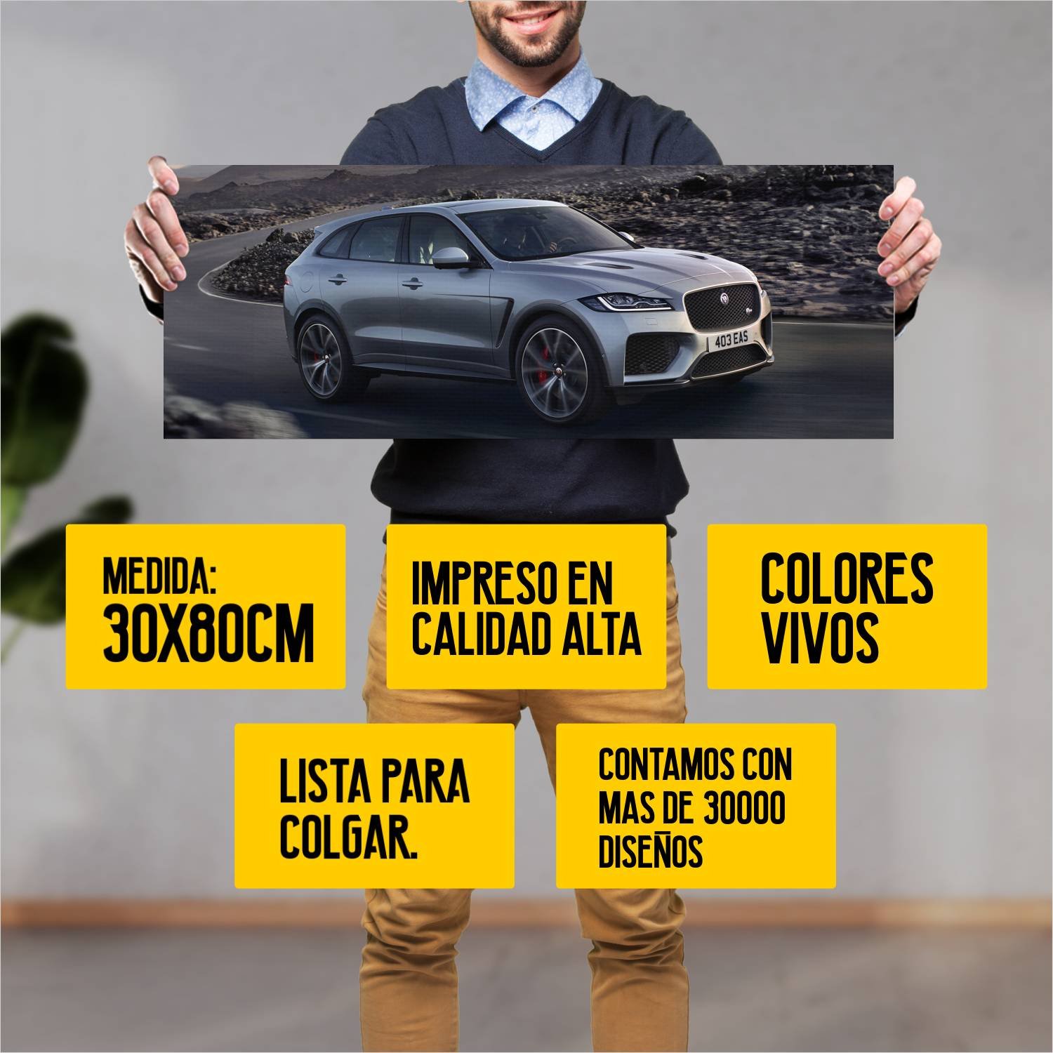 Descubre la elegancia y el estilo con nuestro cuadro impreso en canva full color de 30×80 cm. Este impresionante diseño de 2018 jaguar f pace svr auto 498 es el complemento perfecto para cualquier espacio.