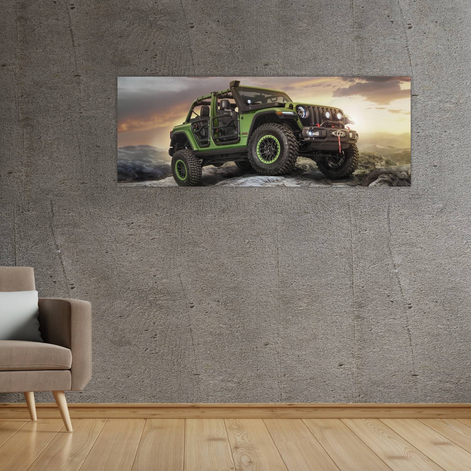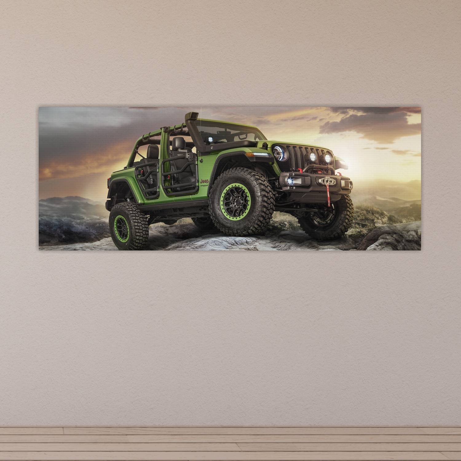 Descubre la elegancia y el estilo con nuestro cuadro impreso en canva full color de 30×80 cm. Este impresionante diseño de 2018 jeep wrangler unlimited 130 es el complemento perfecto para cualquier espacio.