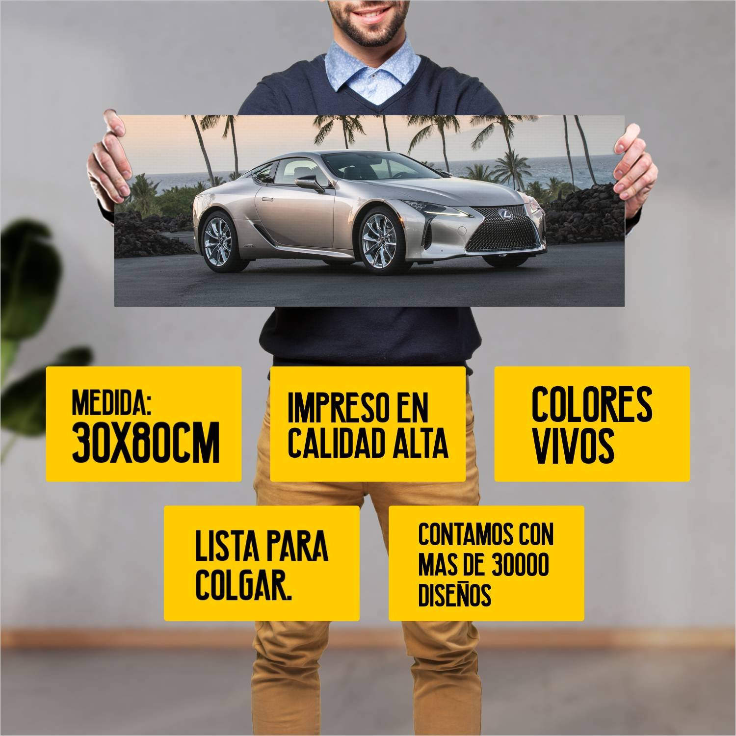 Descubre la elegancia y el estilo con nuestro cuadro impreso en canva full color de 30×80 cm. Este impresionante diseño de 2018 lexus lc hybrid us es el complemento perfecto para cualquier espacio.