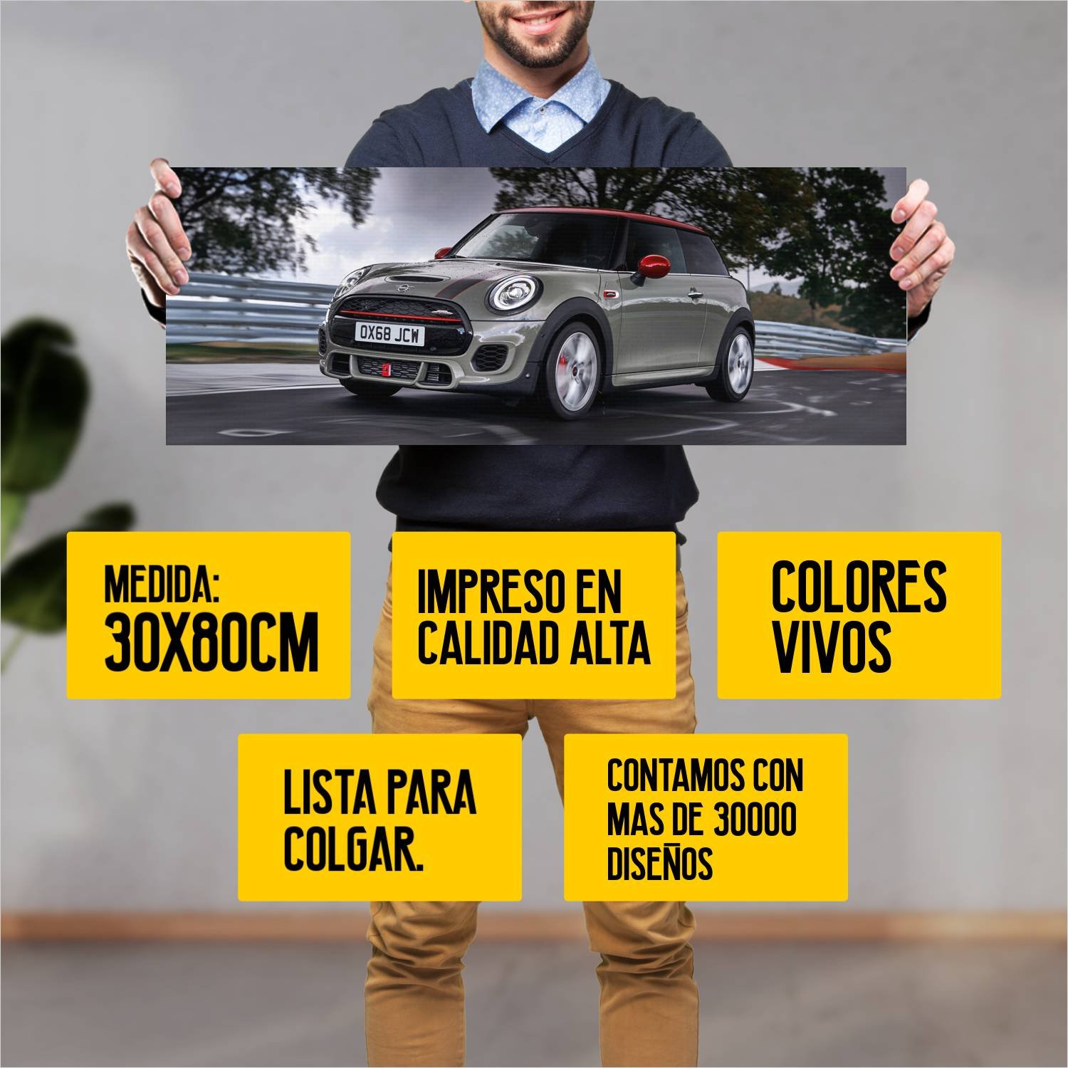 Descubre la elegancia y el estilo con nuestro cuadro impreso en canva full color de 30×80 cm. Este impresionante diseño de 2018 mini john cooper works 337 es el complemento perfecto para cualquier espacio.