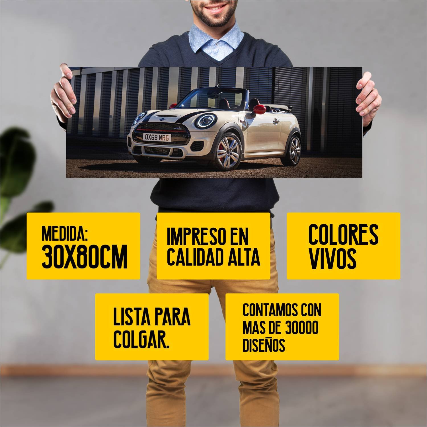 Descubre la elegancia y el estilo con nuestro cuadro impreso en canva full color de 30×80 cm. Este impresionante diseño de 2018 mini john cooper works 340 es el complemento perfecto para cualquier espacio.