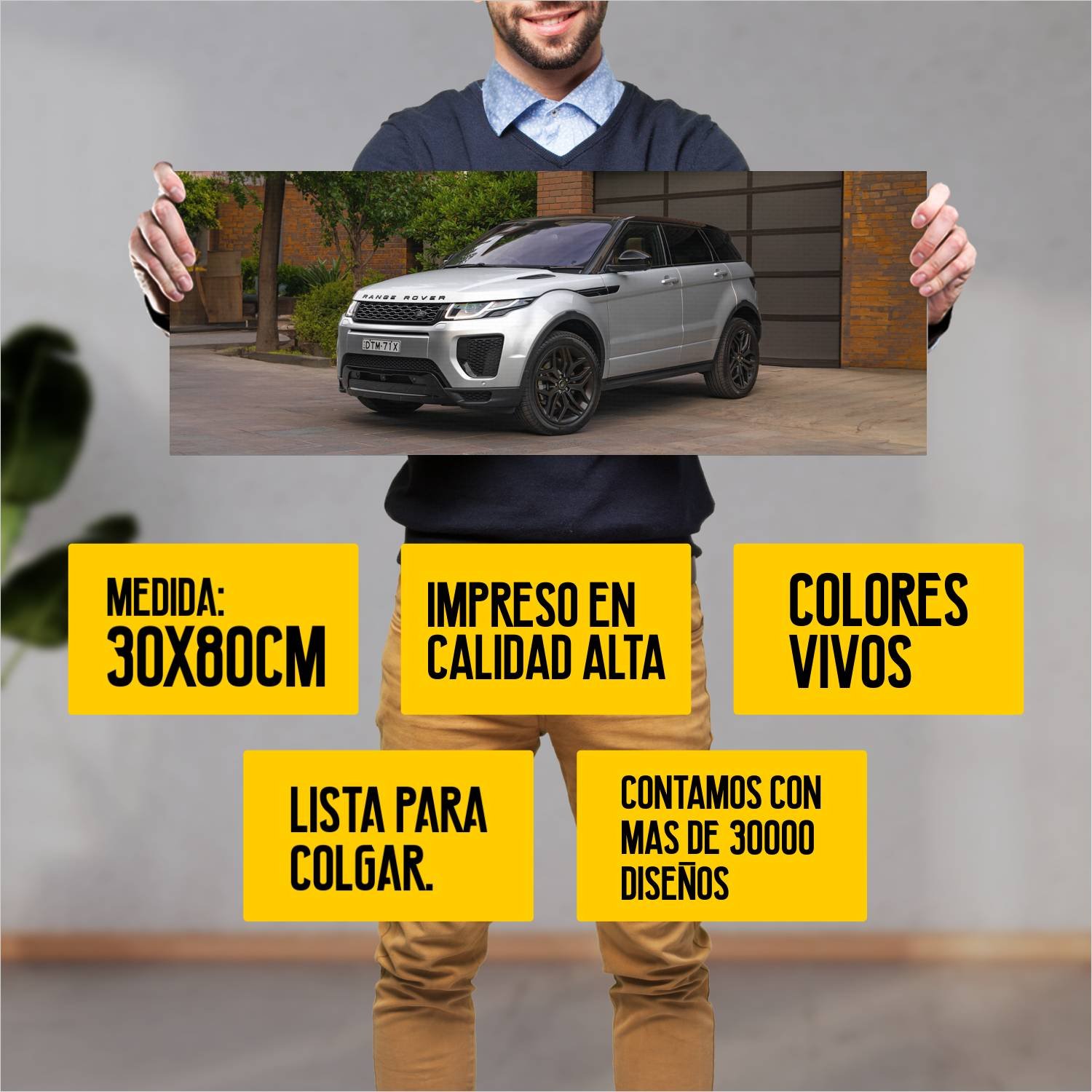 Descubre la elegancia y el estilo con nuestro cuadro impreso en canva full color de 30×80 cm. Este impresionante diseño de 2018 range rover evoque dyna 379 es el complemento perfecto para cualquier espacio.