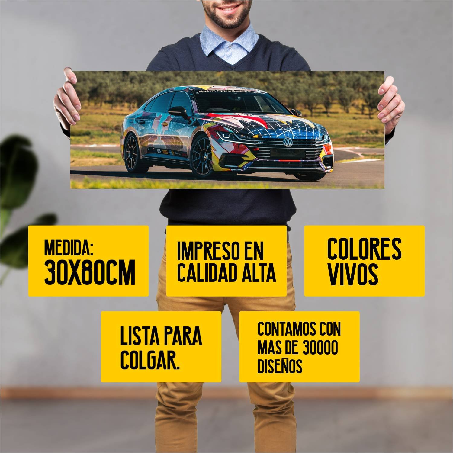 Descubre la elegancia y el estilo con nuestro cuadro impreso en canva full color de 30×80 cm. Este impresionante diseño de 2018 volkswagen art3on au 80 535 es el complemento perfecto para cualquier espacio.