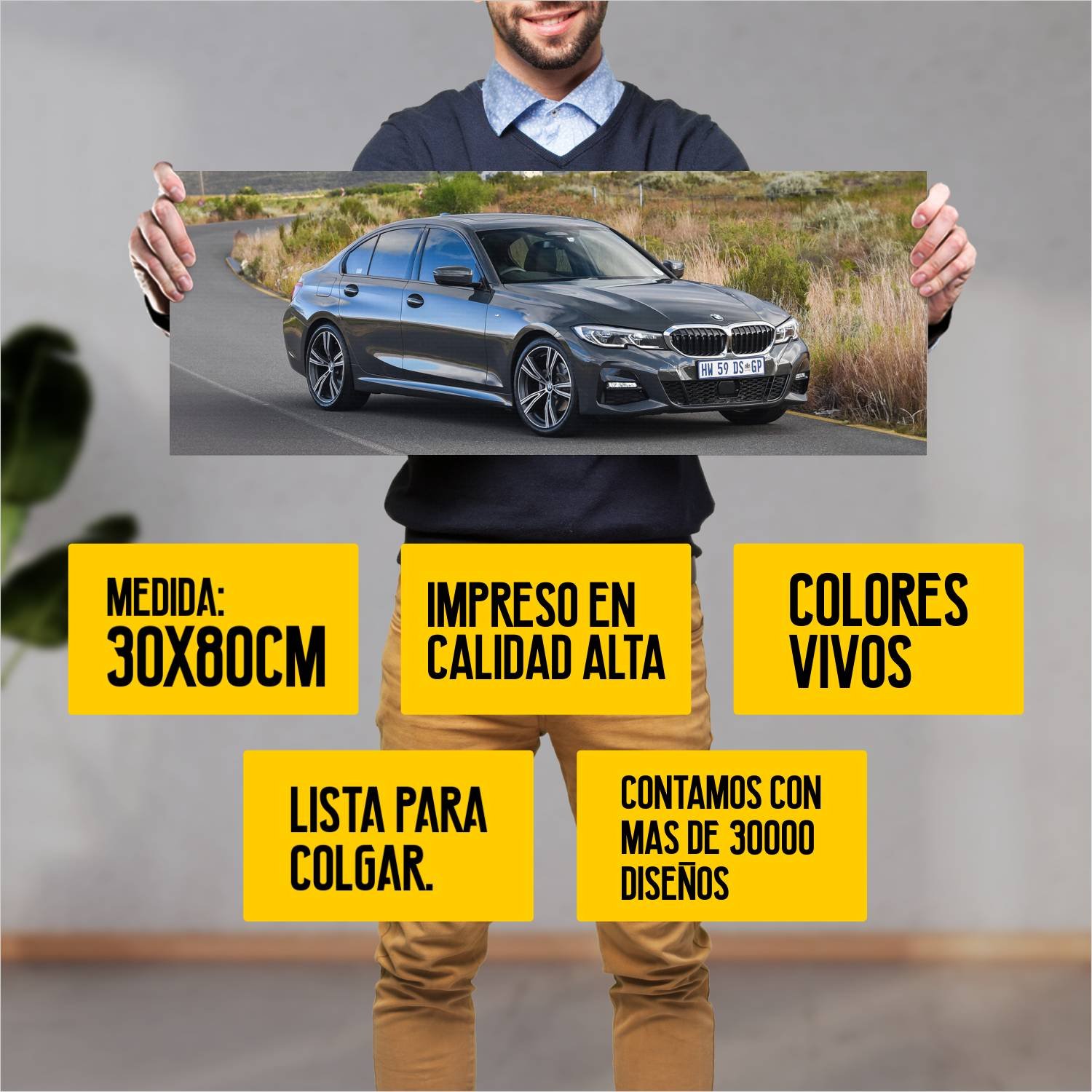 Descubre la elegancia y el estilo con nuestro cuadro impreso en canva full color de 30×80 cm. Este impresionante diseño de 2019 bmw 3 series m sport za 726 es el complemento perfecto para cualquier espacio.