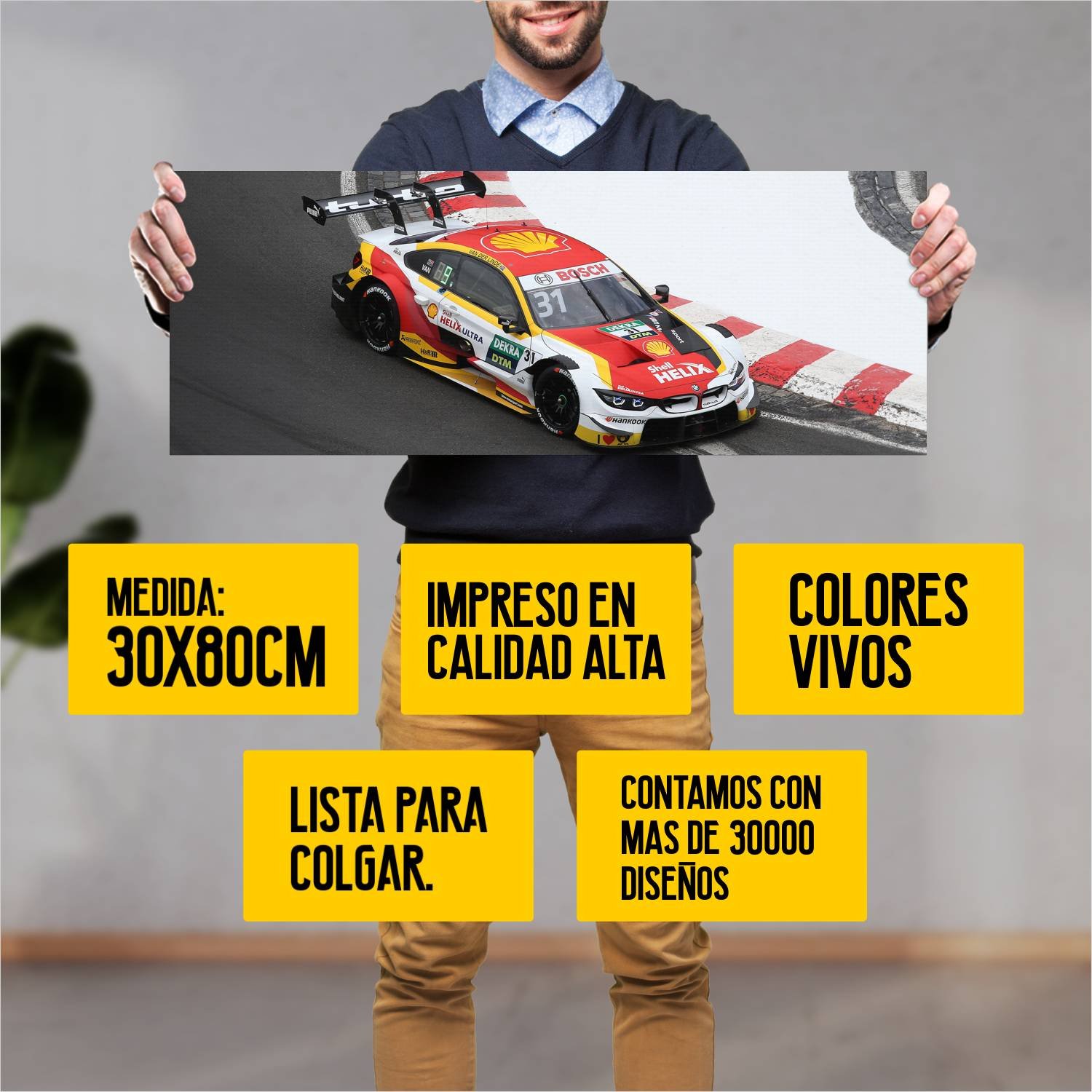 Descubre la elegancia y el estilo con nuestro cuadro impreso en canva full color de 30×80 cm. Este impresionante diseño de 2019 bmw m4 dtm auto 202 es el complemento perfecto para cualquier espacio.