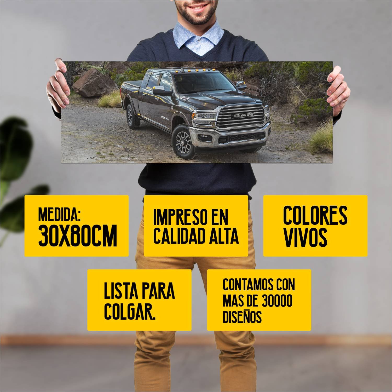 Descubre la elegancia y el estilo con nuestro cuadro impreso en canva full color de 30×80 cm. Este impresionante diseño de 2019 ram 2500 longhorn mega 57 es el complemento perfecto para cualquier espacio.