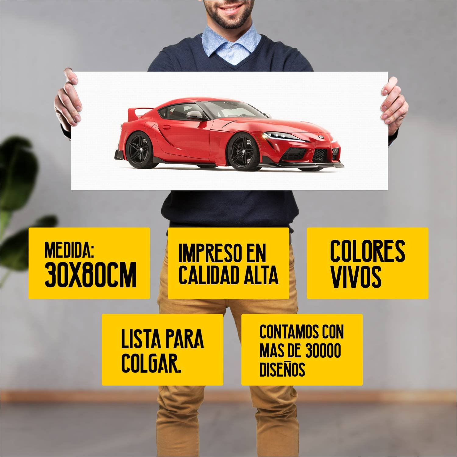 Descubre la elegancia y el estilo con nuestro cuadro impreso en canva full color de 30×80 cm. Este impresionante diseño de 2019 toyota gr supra heritag 230 es el complemento perfecto para cualquier espacio.