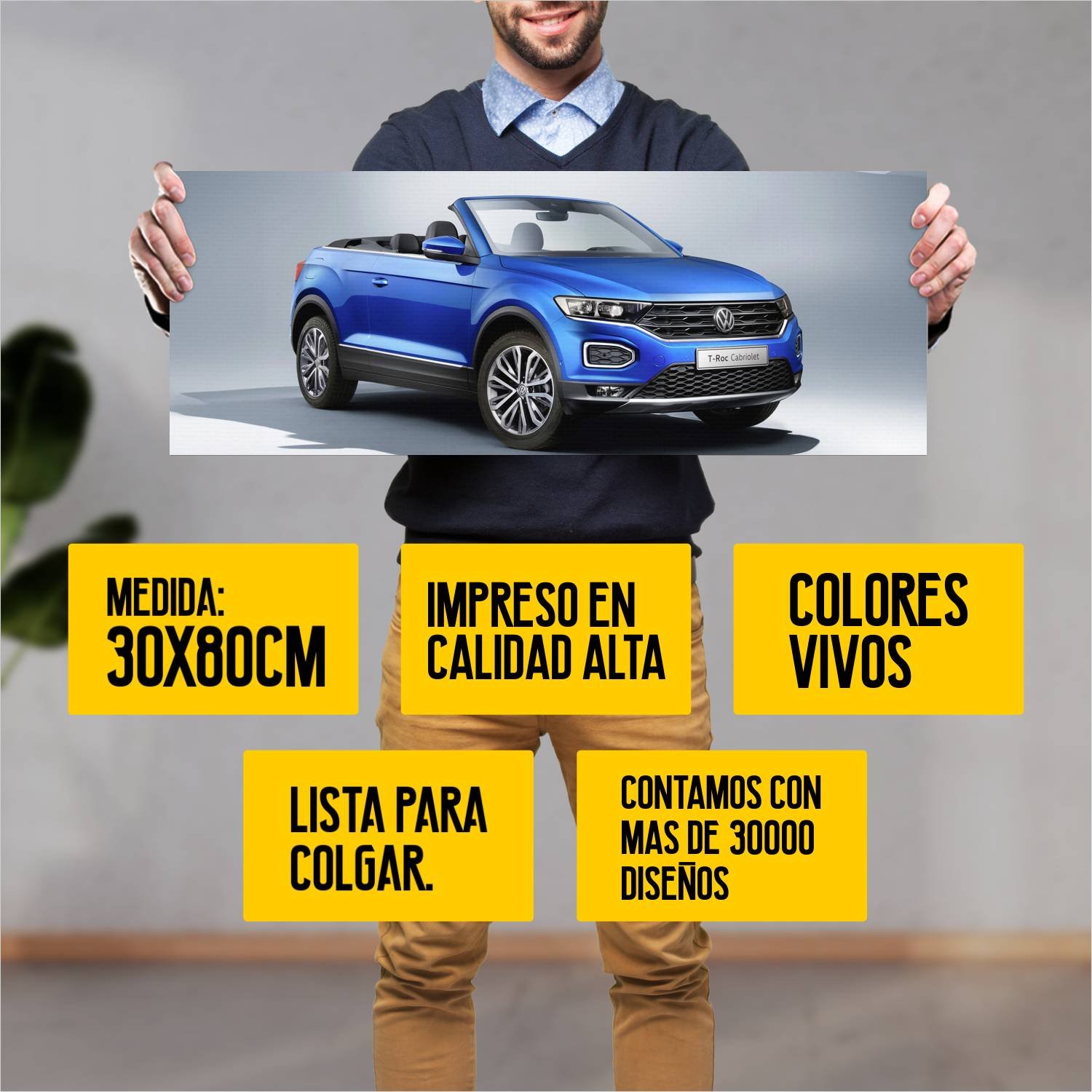 Descubre la elegancia y el estilo con nuestro cuadro impreso en canva full color de 30×80 cm. Este impresionante diseño de 2019 volkswagen t roc cabrio 716 es el complemento perfecto para cualquier espacio.