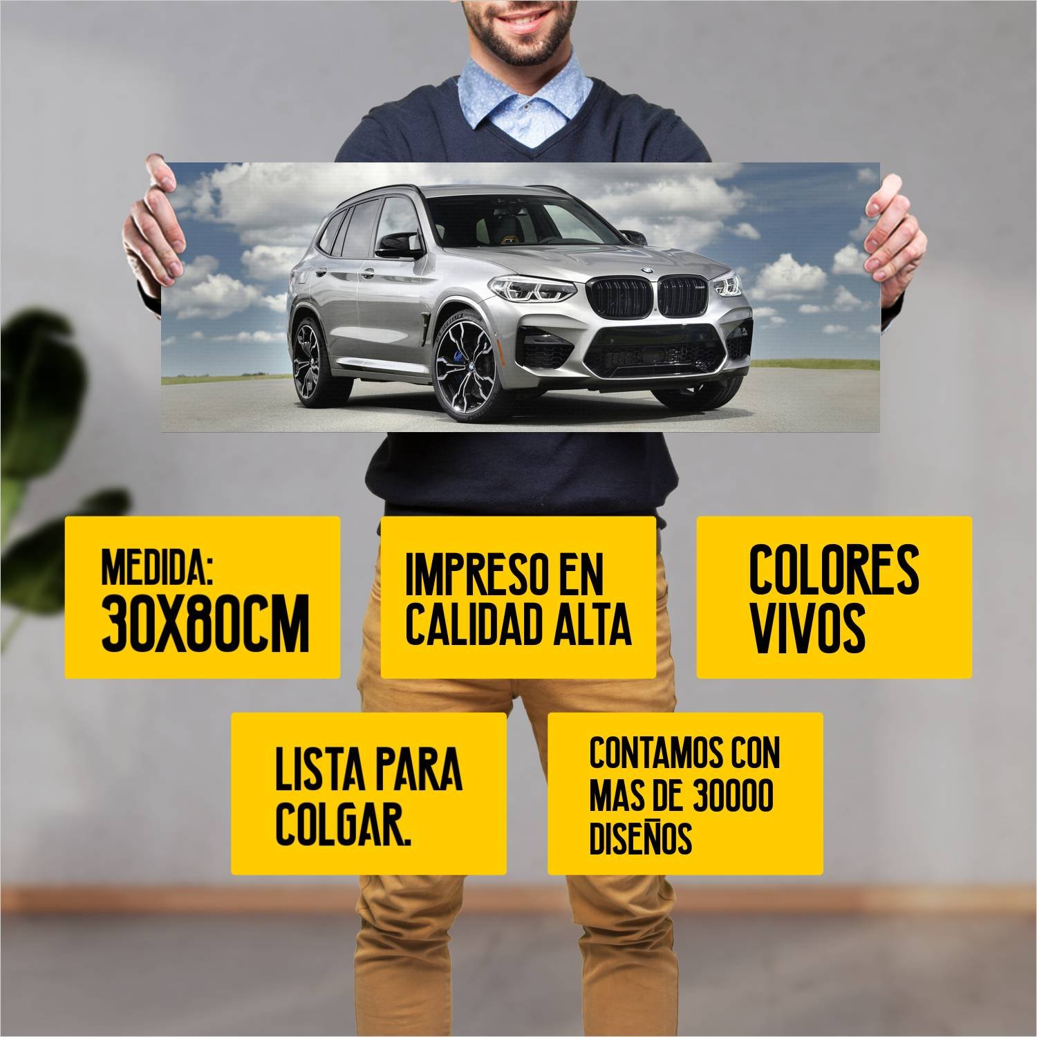 Descubre la elegancia y el estilo con nuestro cuadro impreso en canva full color de 30×80 cm. Este impresionante diseño de 2020 bmw x3 m competition us 972 es el complemento perfecto para cualquier espacio.