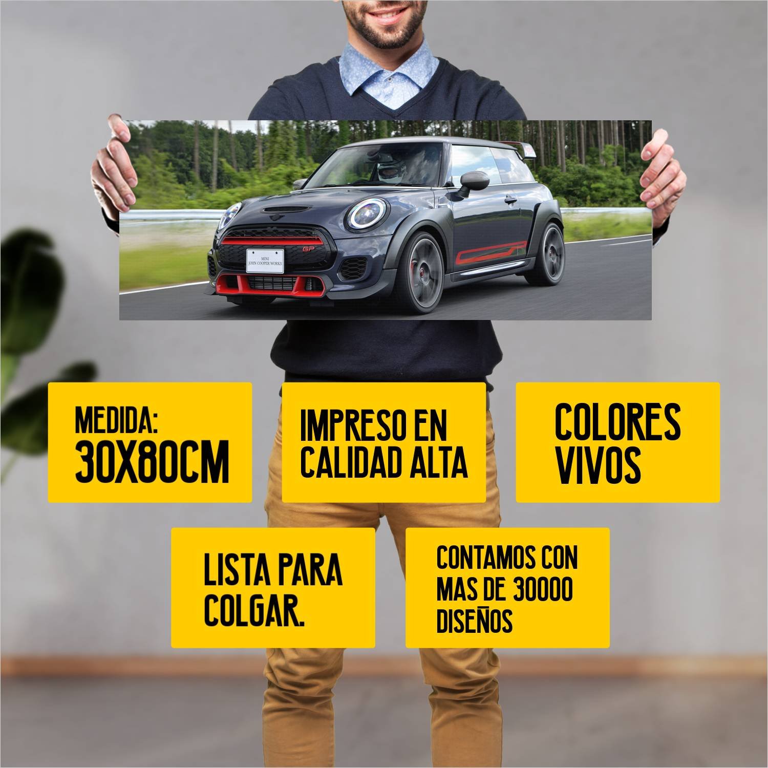 Descubre la elegancia y el estilo con nuestro cuadro impreso en canva full color de 30×80 cm. Este impresionante diseño de 2020 mini john cooper works 389 es el complemento perfecto para cualquier espacio.