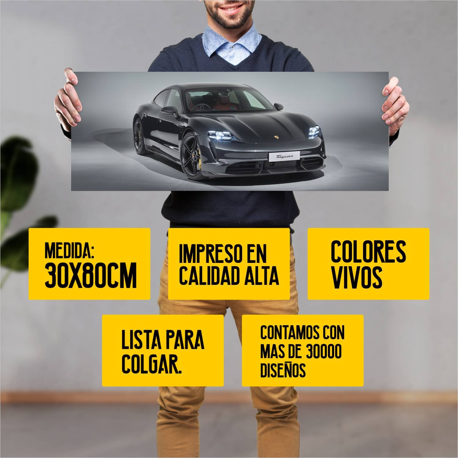 Descubre la elegancia y el estilo con nuestro cuadro impreso en canva full color de 30×80 cm. Este impresionante diseño de 2020 porsche taycan turbo s 431 es el complemento perfecto para cualquier espacio.